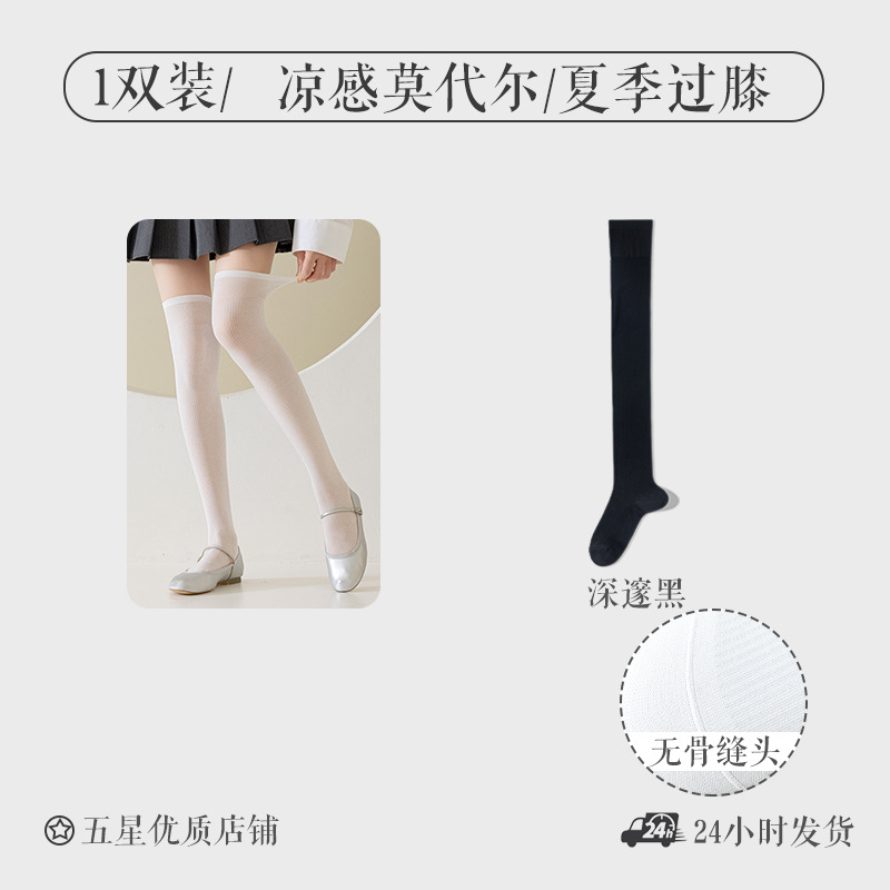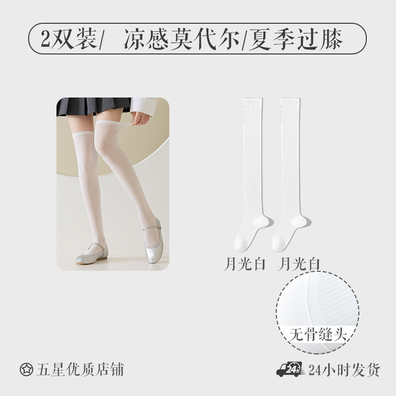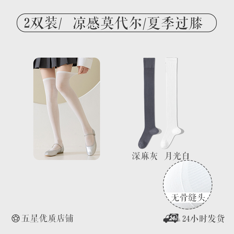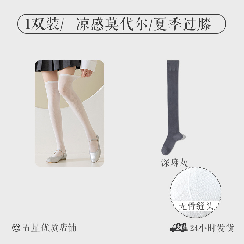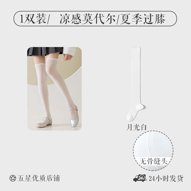 모달 양말 여자 긴 배럴 여름 얇은 뼈없는 무릎 양말 순수한 슬림을 보이는 긴 다리 양말 올 매치 필 스타킹