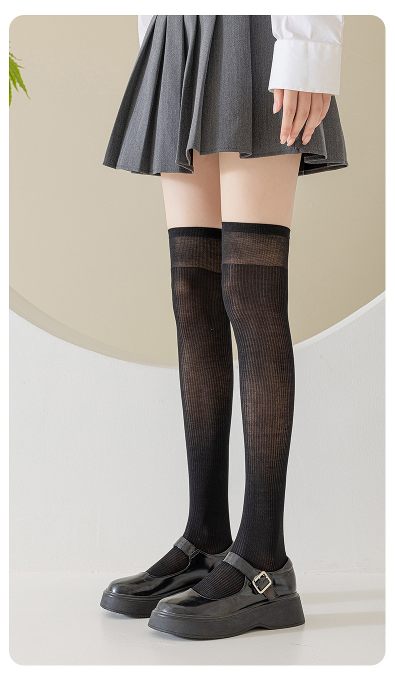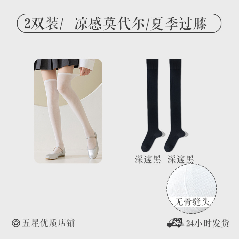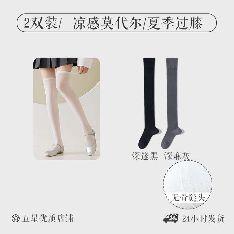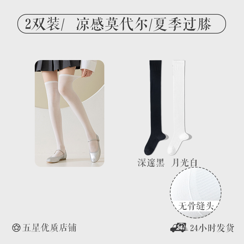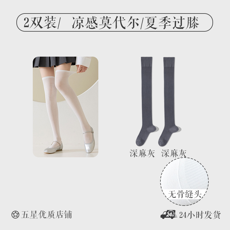 모달 양말 여자 긴 배럴 여름 얇은 뼈없는 무릎 양말 순수한 슬림을 보이는 긴 다리 양말 올 매치 필 스타킹