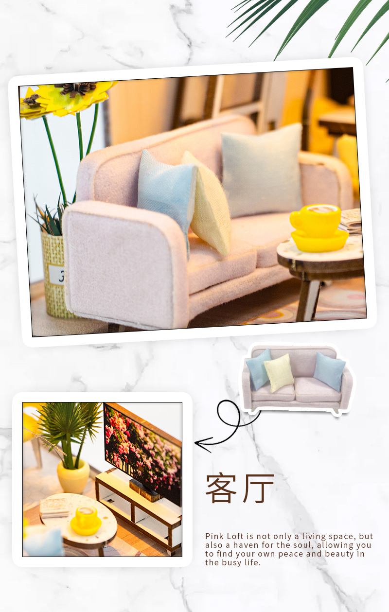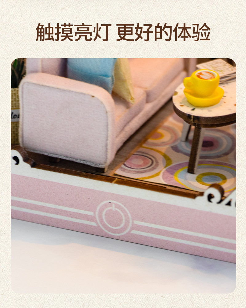 홍다 DIY 소형 집 수제 조립 책꽂이 3D 창의적인 목재 모델 크로스보더 미니어처 블록 장식 소형 집