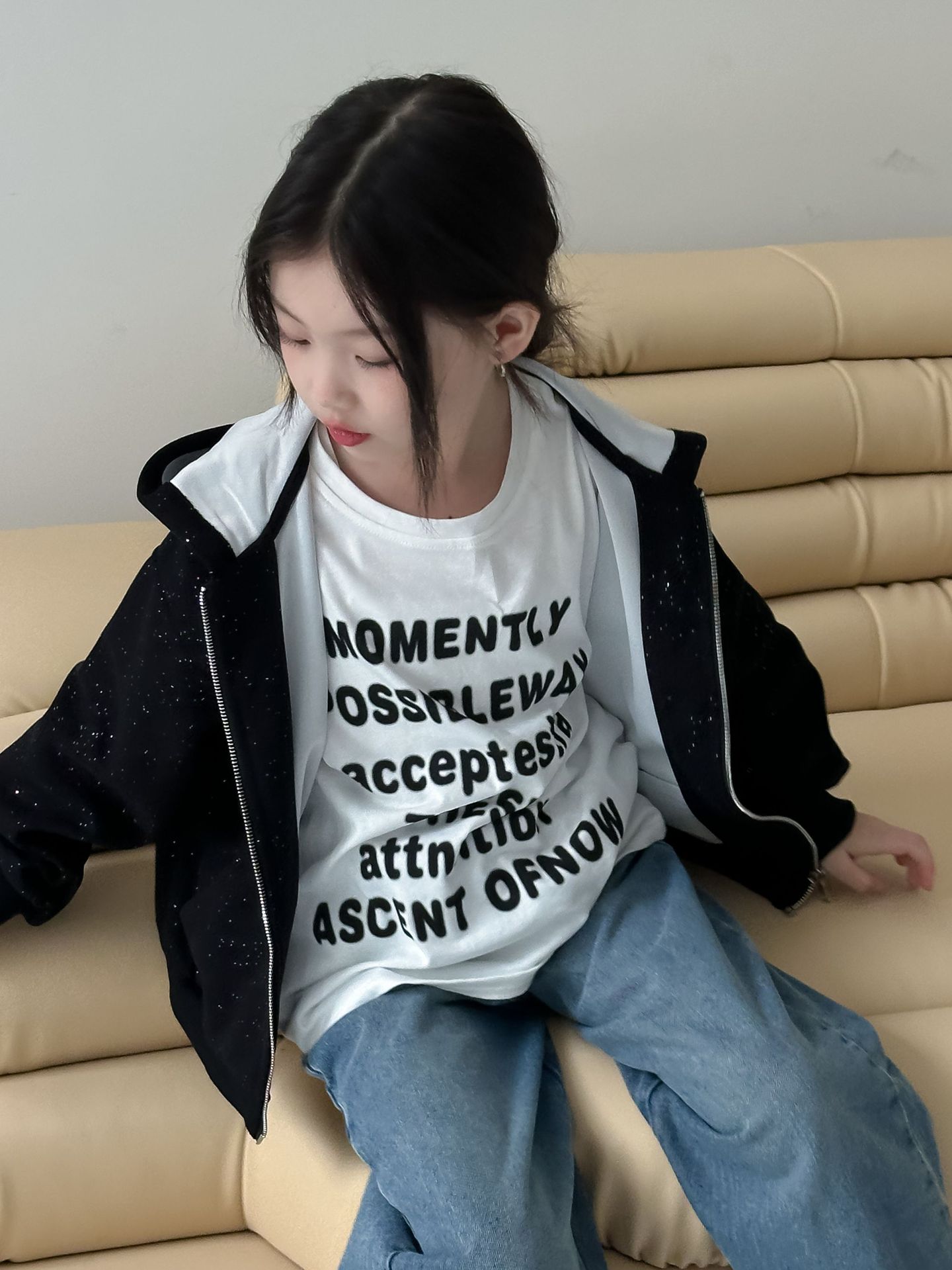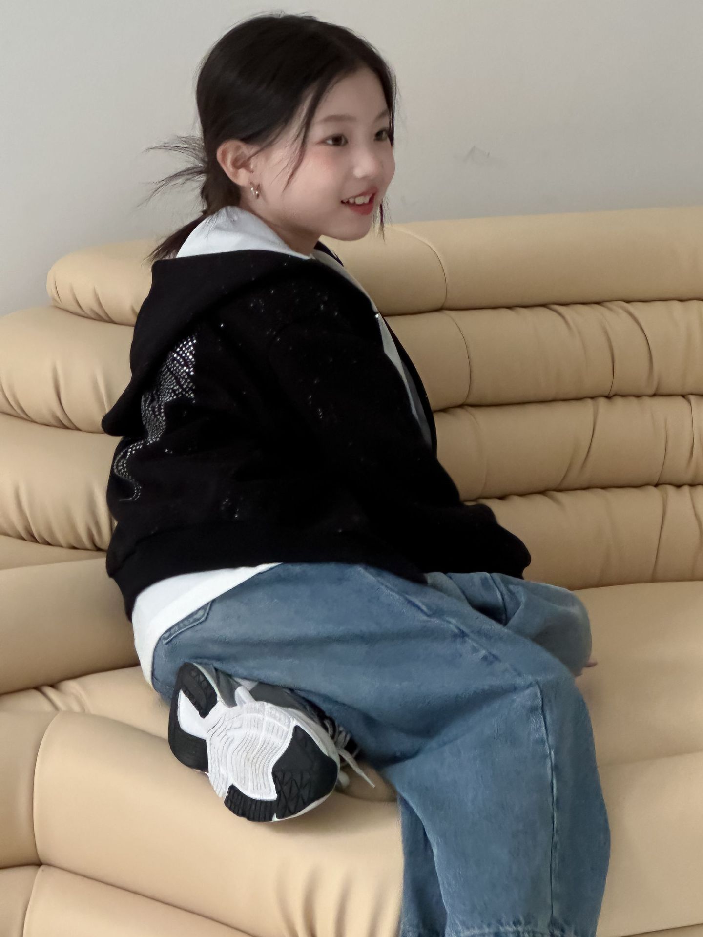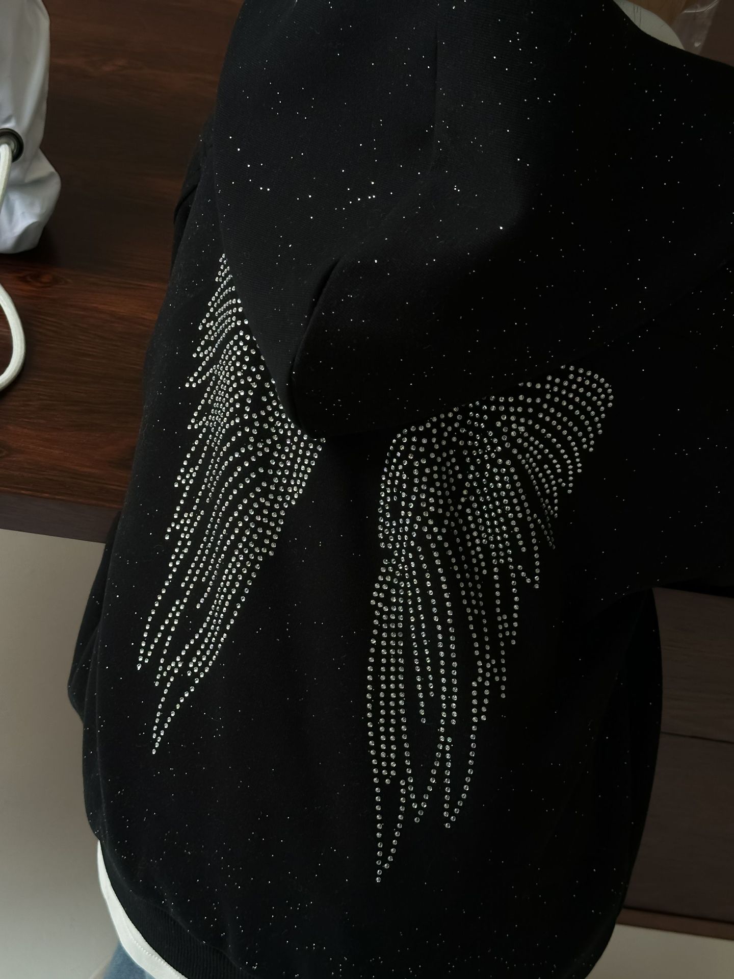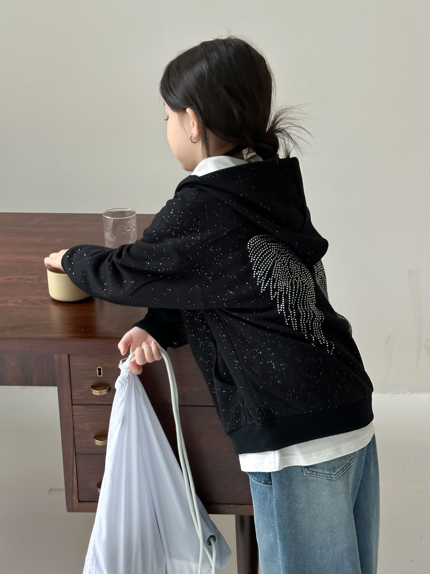 어린이 코트 2024 가을 어린이 스팽글 날개 후드 코트 중립 스타일 소년과 소년의 트렌디 한 핫 드릴링 카디건 탑