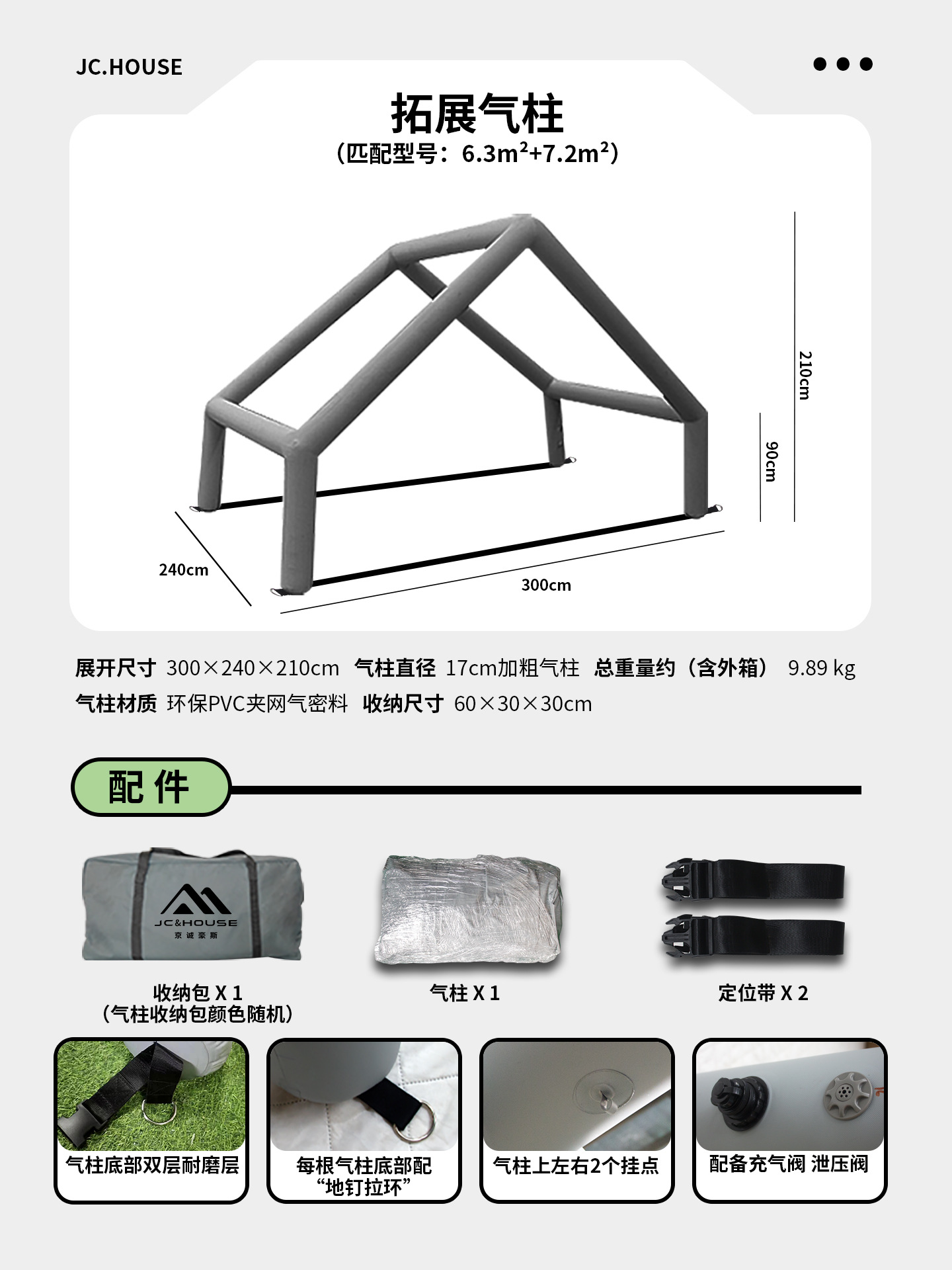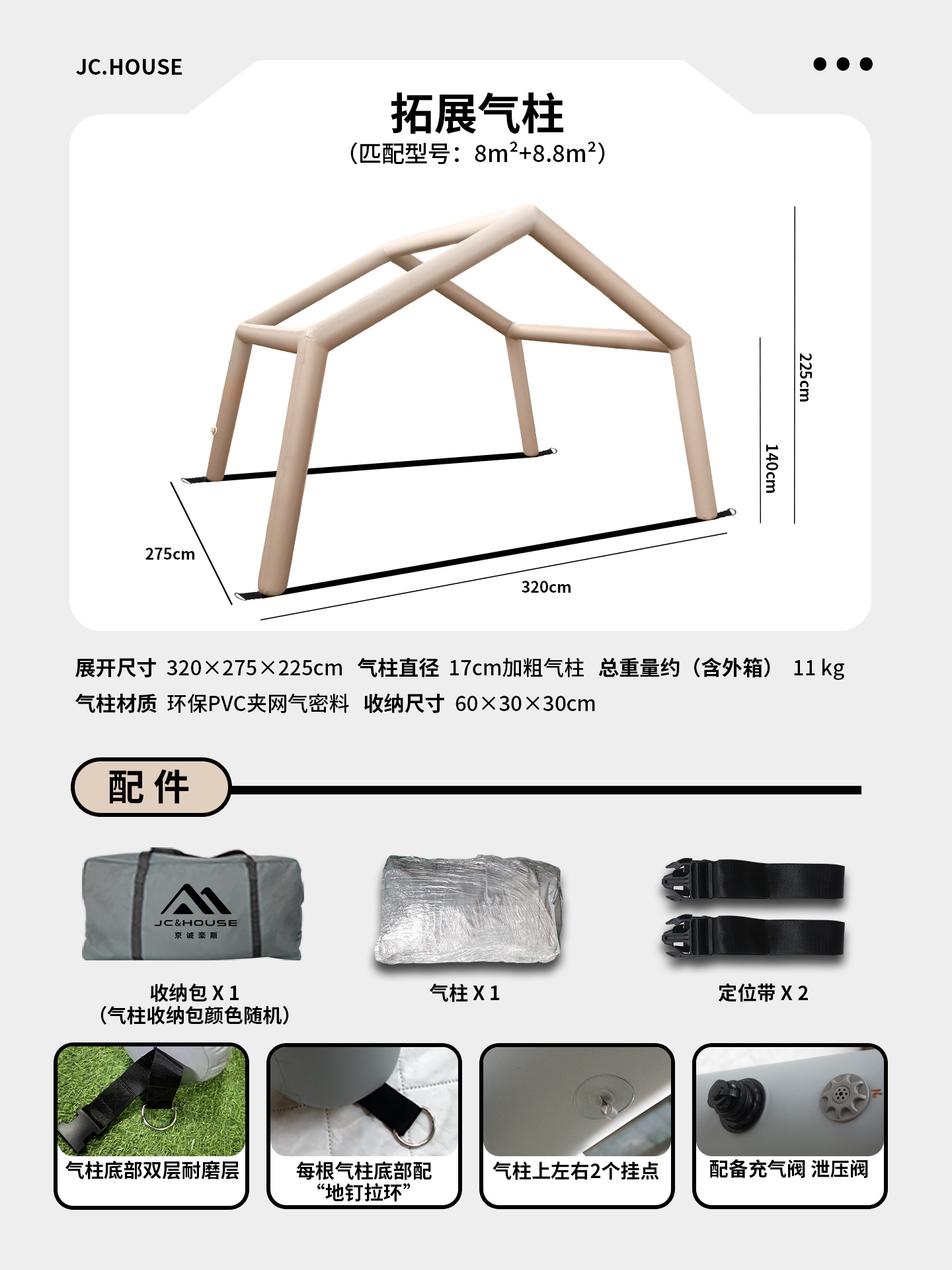 징청하우스(JcHouse) 에어텐트 출입구 확장용 에어컬럼 PVC 에어컬럼 6.3 ㎡ /8+8.8 ㎡ /9.7스토어 가기