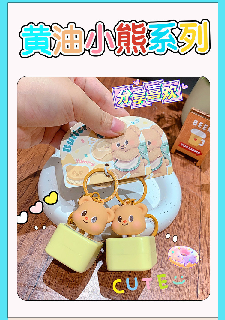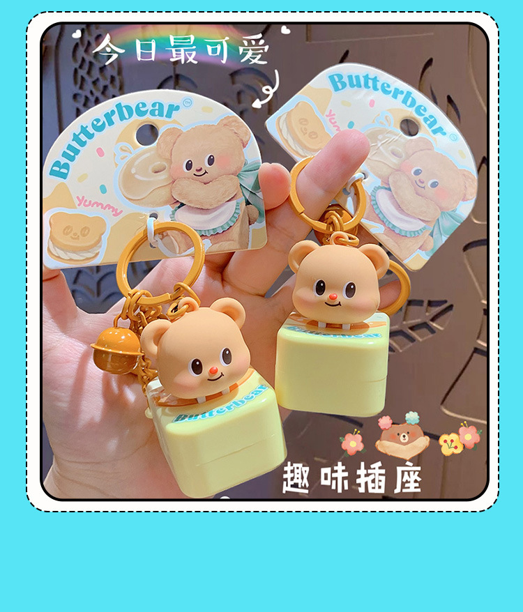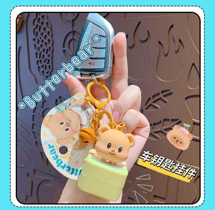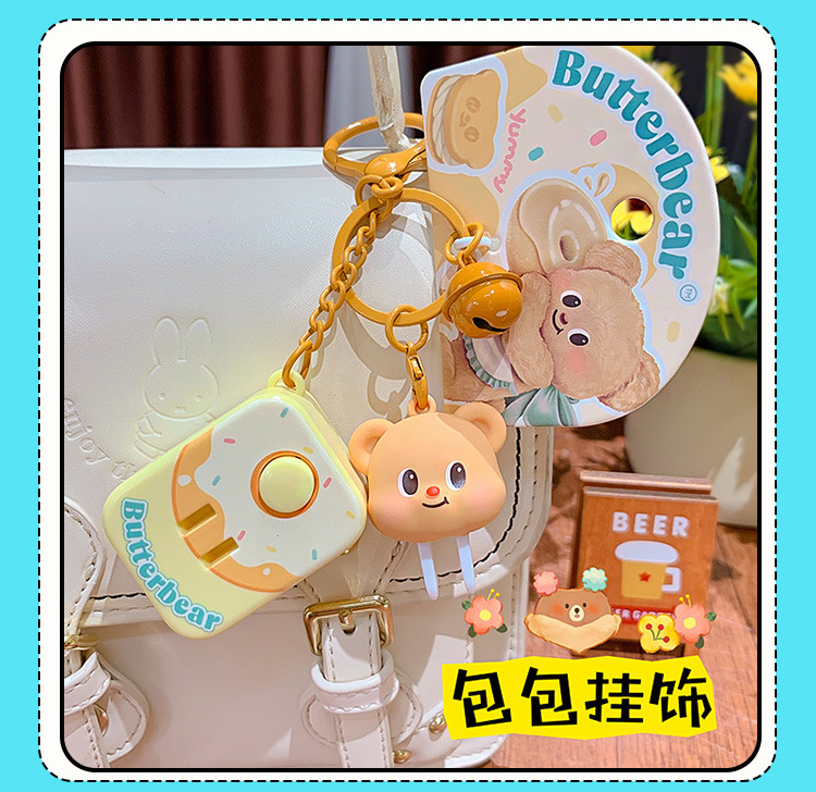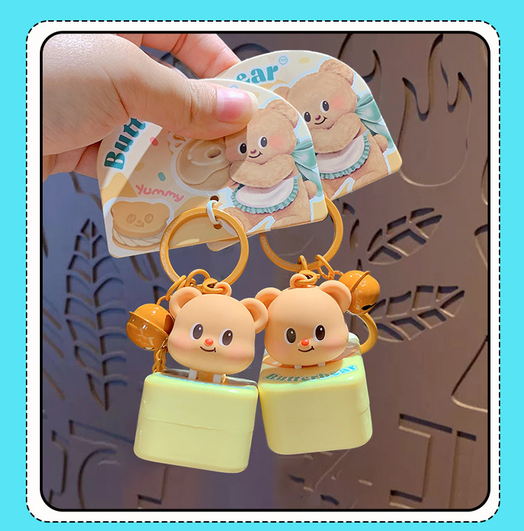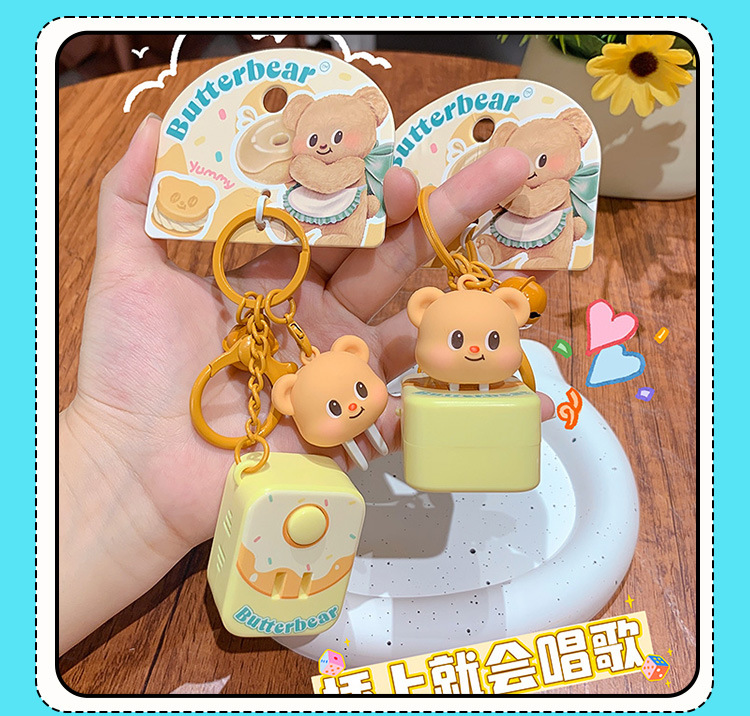 정품 만화 버터 곰 재미있는 노래 가방 키 체인 펜던트 여성 스쿨백 키 체인 교수형 작은 선물