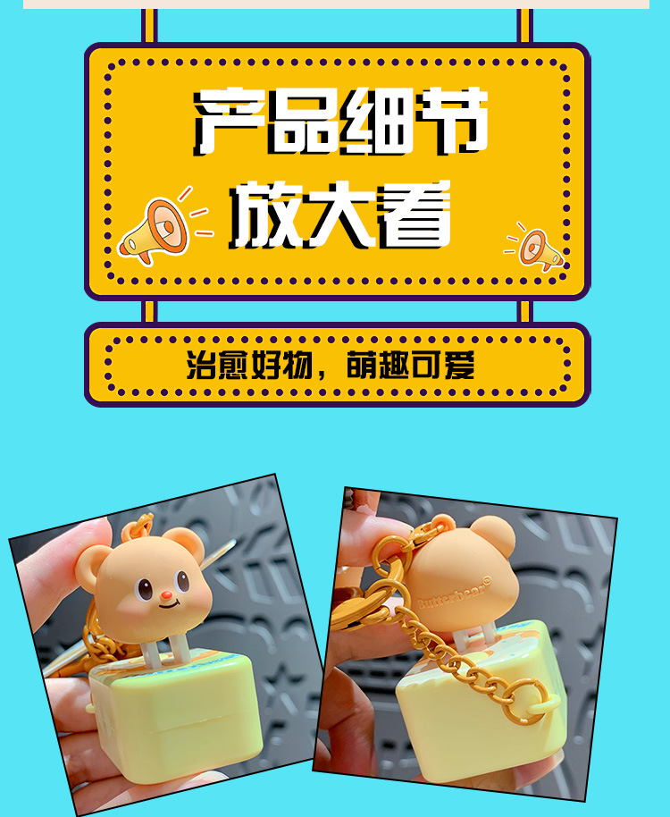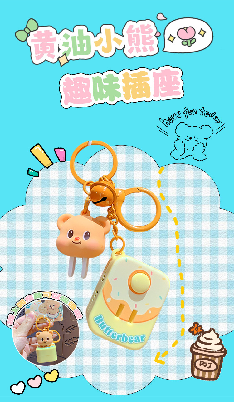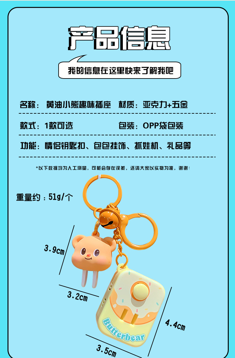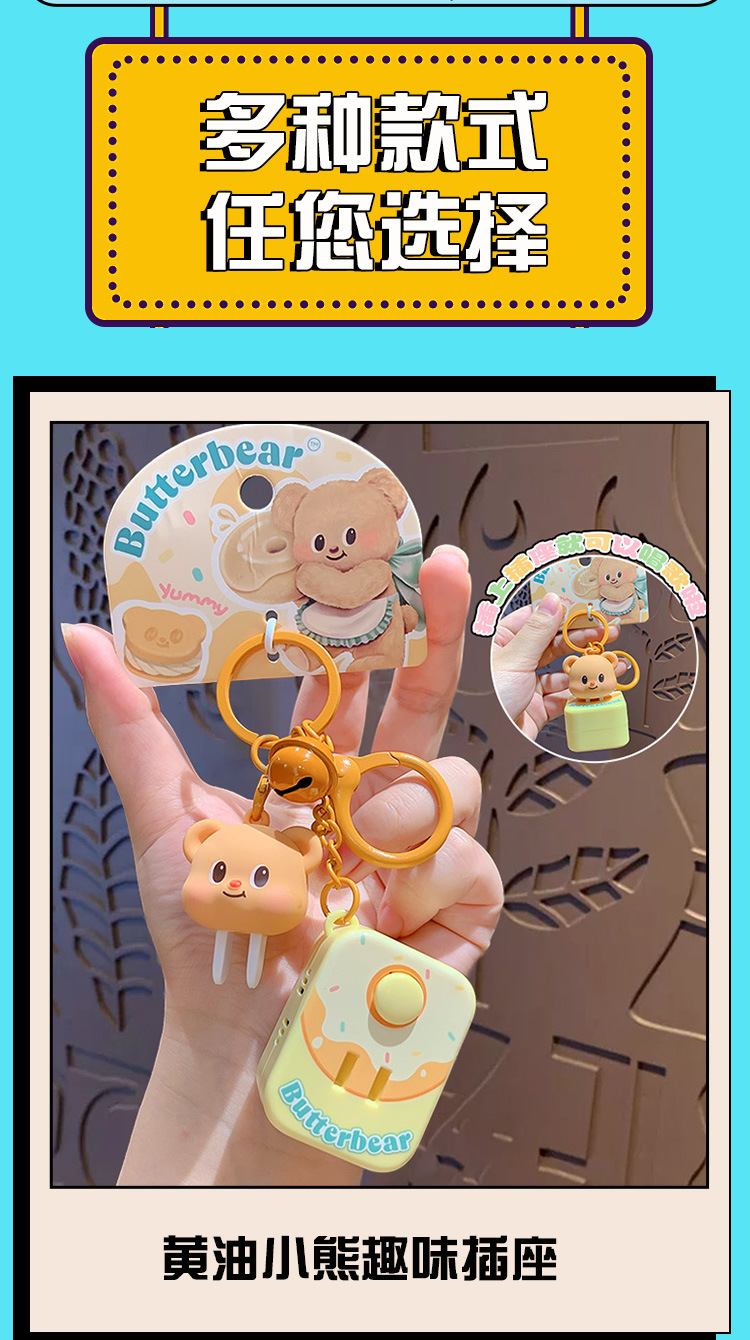 정품 만화 버터 곰 재미있는 노래 가방 키 체인 펜던트 여성 스쿨백 키 체인 교수형 작은 선물