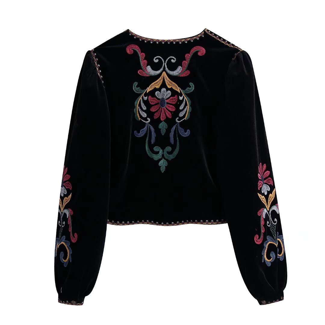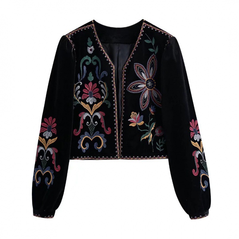 24 BB 대외 무역 유럽과 미국 여성의 여름 빈티지 성격 거리 자수 벨벳 카디건 셔츠