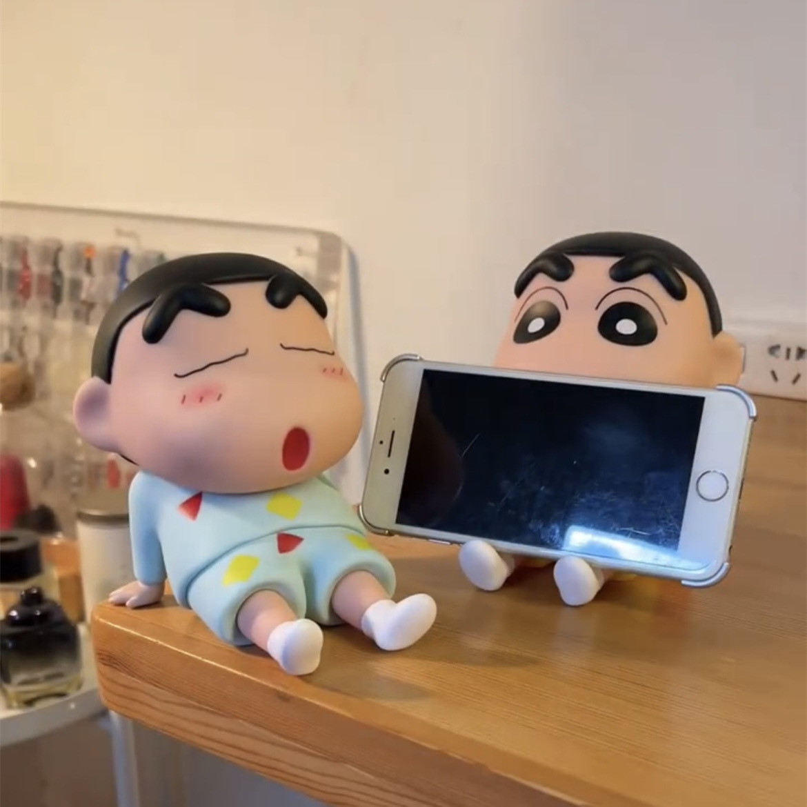 크레용 작은 새로운 휴대 전화 브래킷 게으른 휴대 전화 홀더 수제 머리 움직일 수있는 모델 귀여운 데스크탑 장식 인형 선물스토어 가기