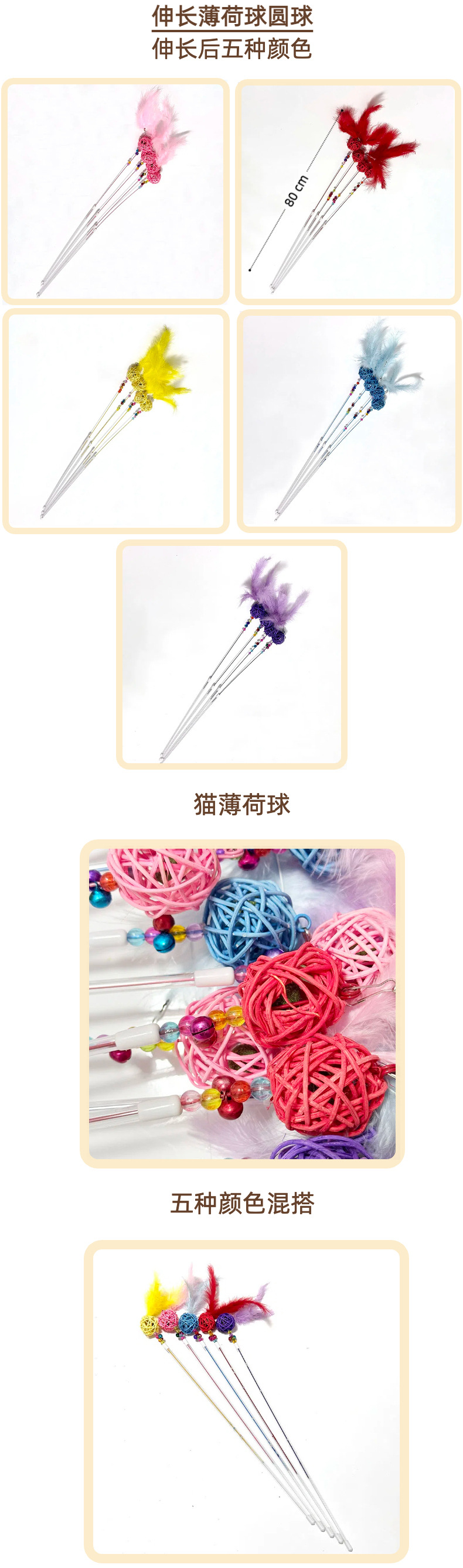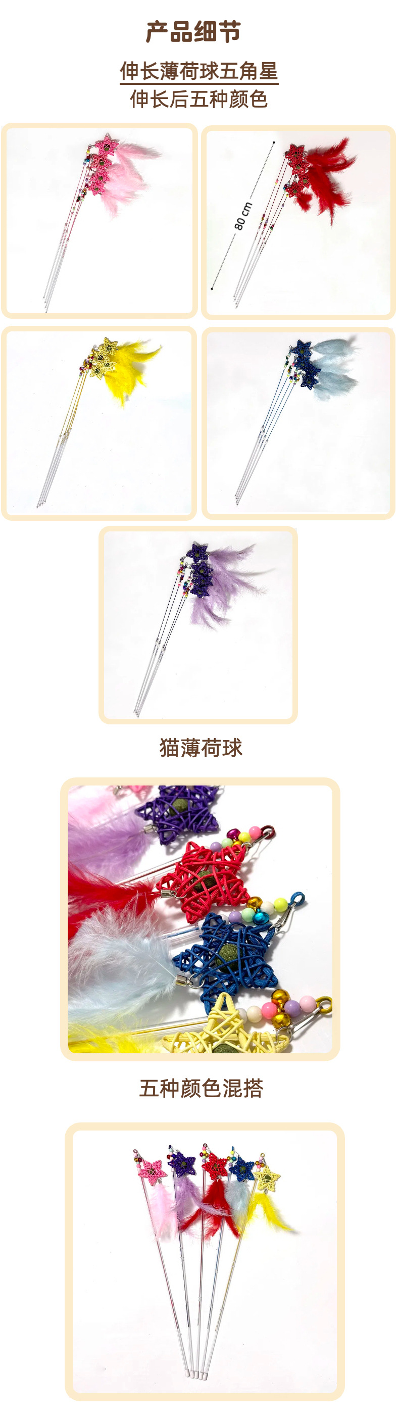 신형 신축성 민트볼, 오각별, 원형볼, 깃털 고양이 장난감 막대, 길이가 긴 내구성 있는 고양이 장난감 도매스토어 가기