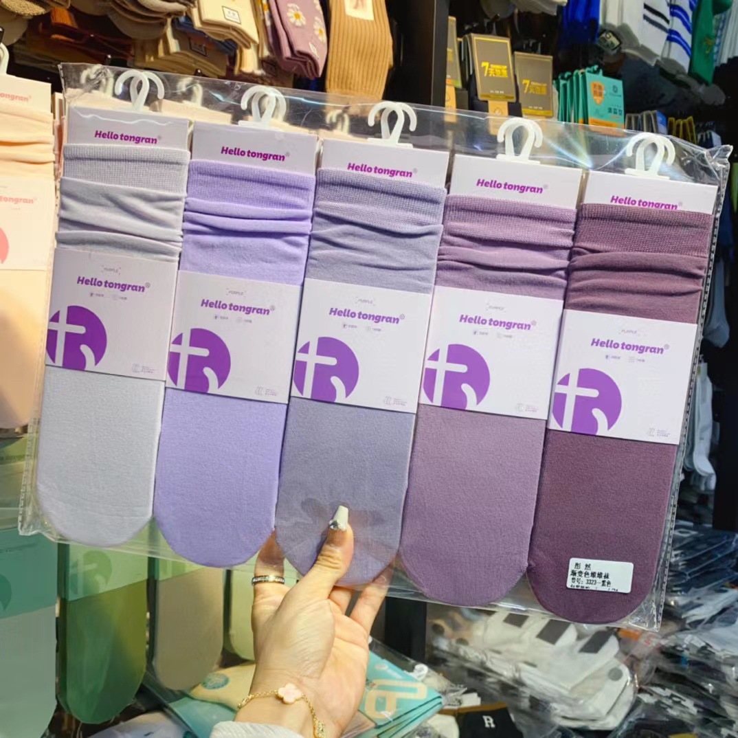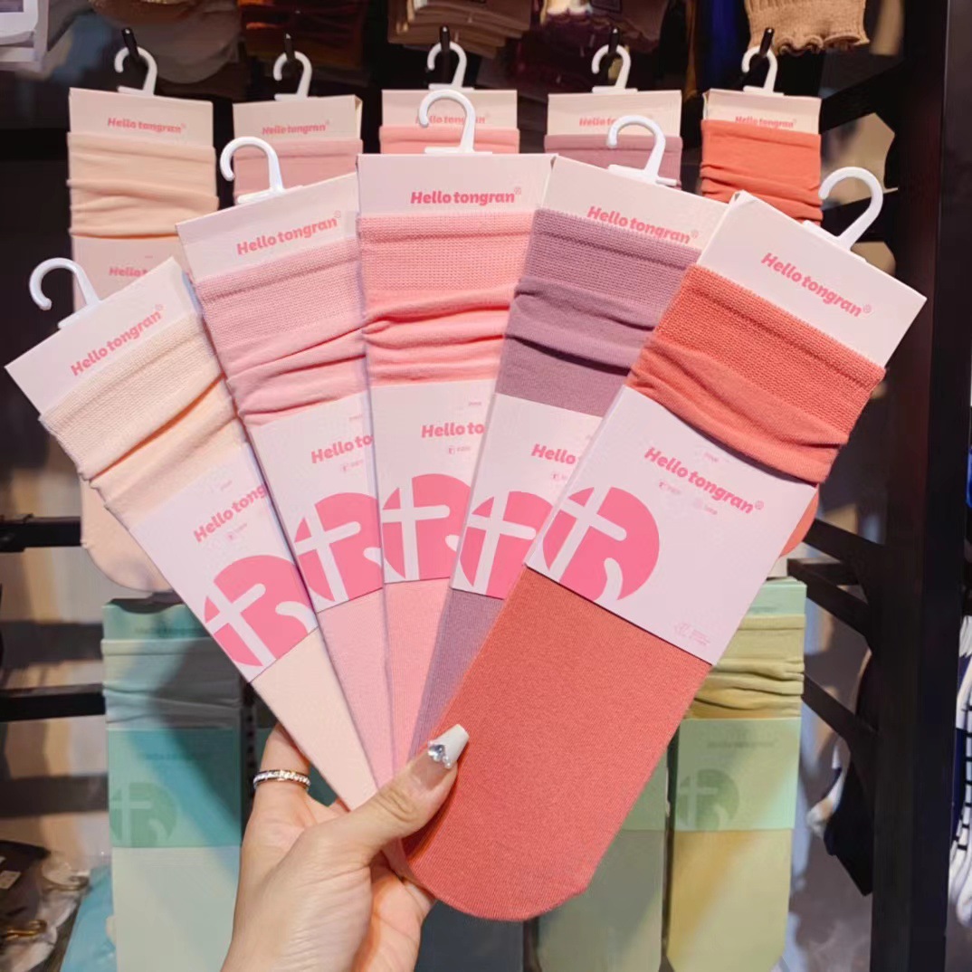 Tongran Dopamine 컬러 스택 양말 가을 소녀의 올매치 편안한 높은 높이 트렌디 양말 슬리밍 고품질 뼈없는 양말스토어 가기