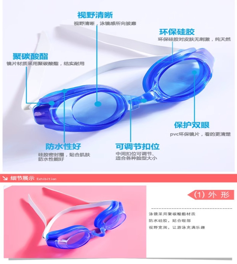재고 어린이 수영 고글 중립 방수 HD 전문 수영 고글 실리콘 머리띠 카드 수영 고글 도매