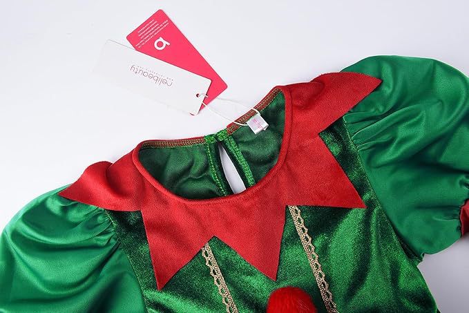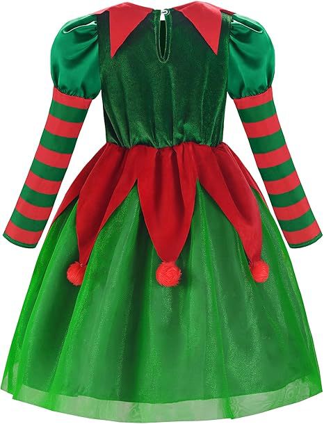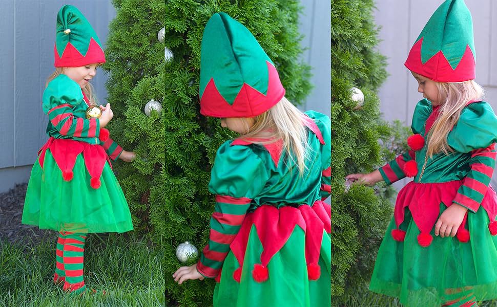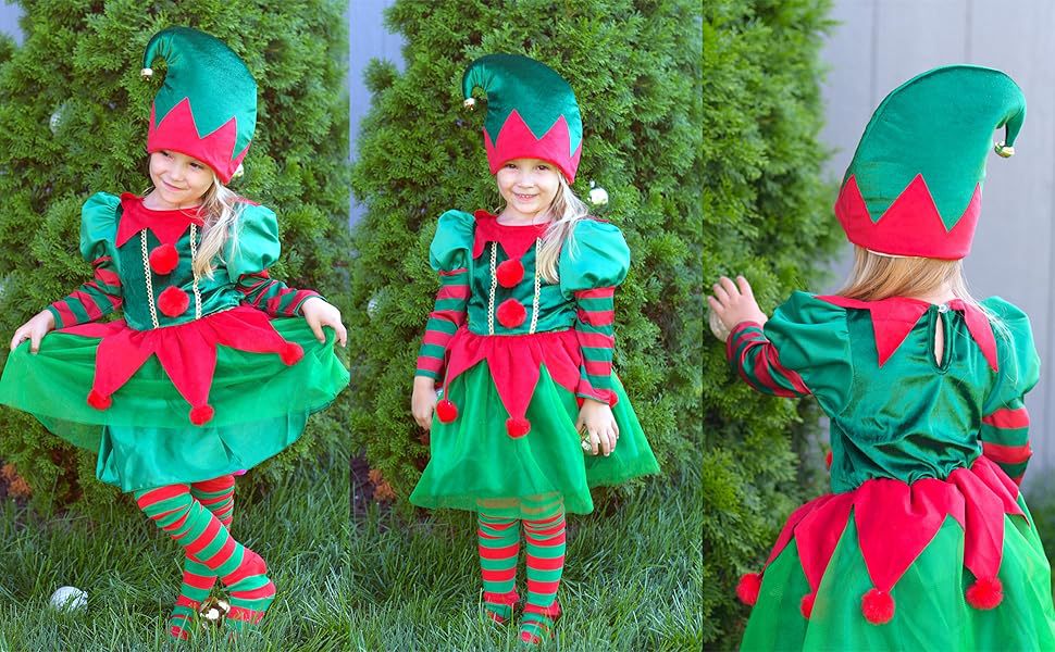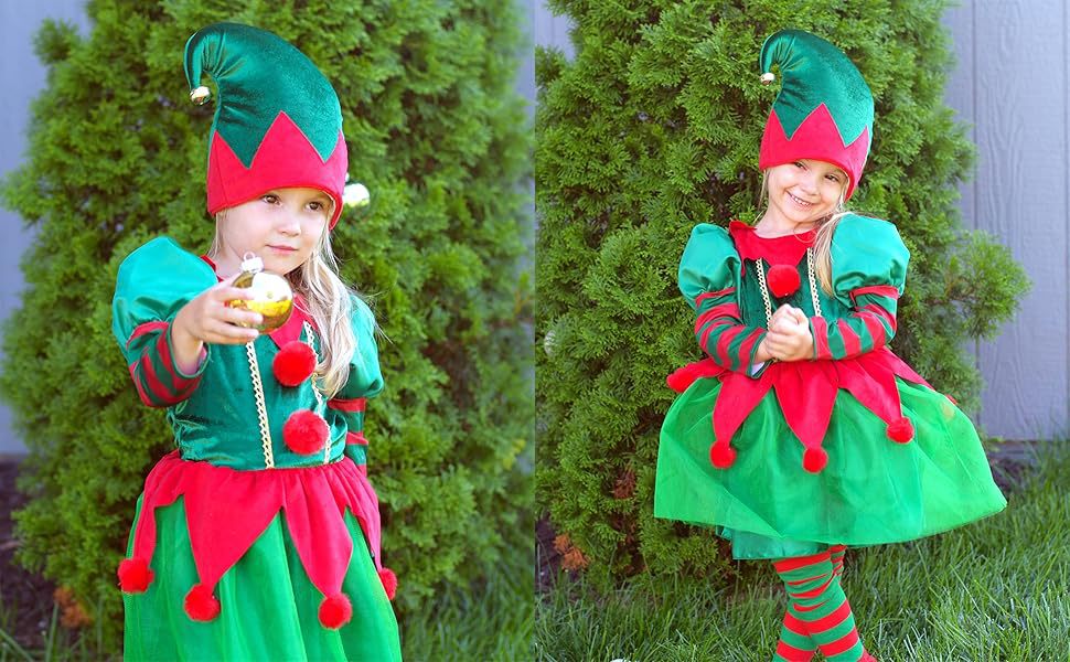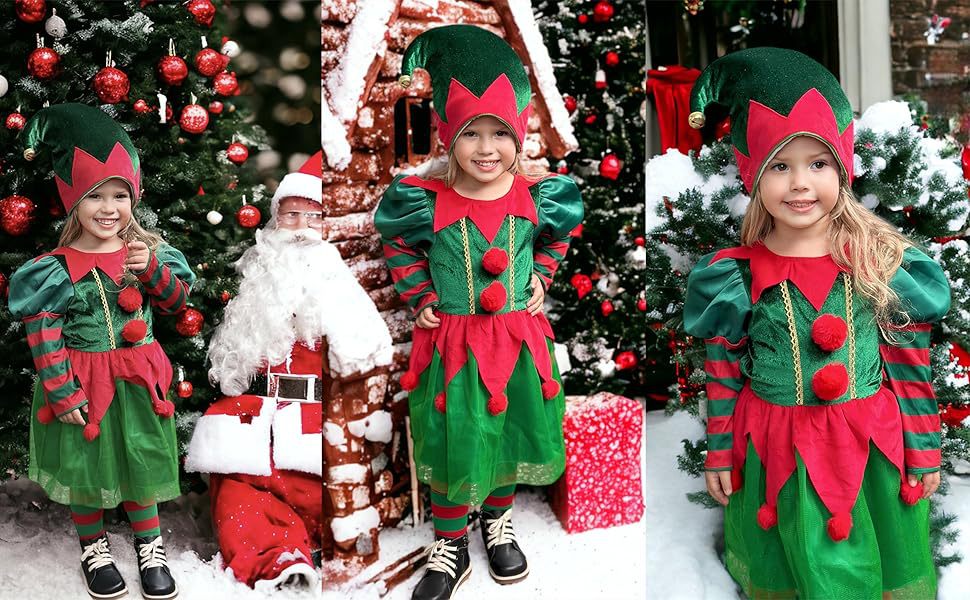 어린이 그린 엘프 의상 산타 리틀 도우미 어린이 크리스마스 엘프 원피스 소녀를위한 베일 세트스토어 가기
