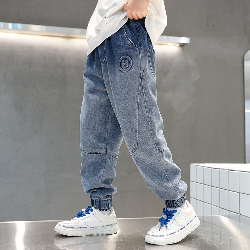 아동복 소년 바지 2024 년 봄과 가을 새 가을 청바지 어린이 가을 바지 유행 대외 무역