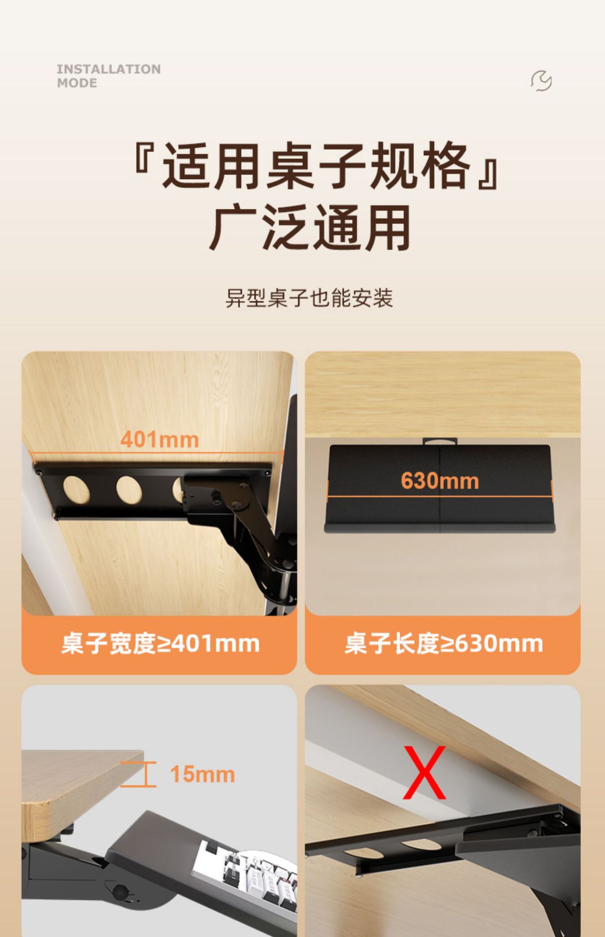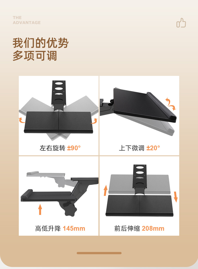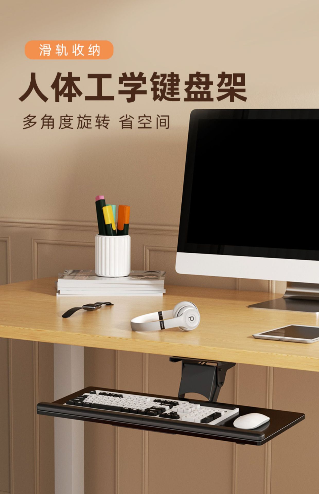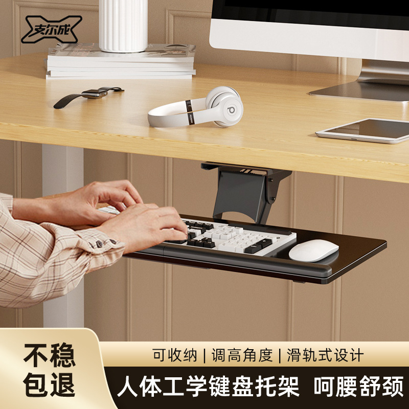 키보드 트레이 인체 공학적 책상 서랍 슬라이드 마우스 트레이 사무실 컴퓨터 데스크톱 확장 회전 브래킷