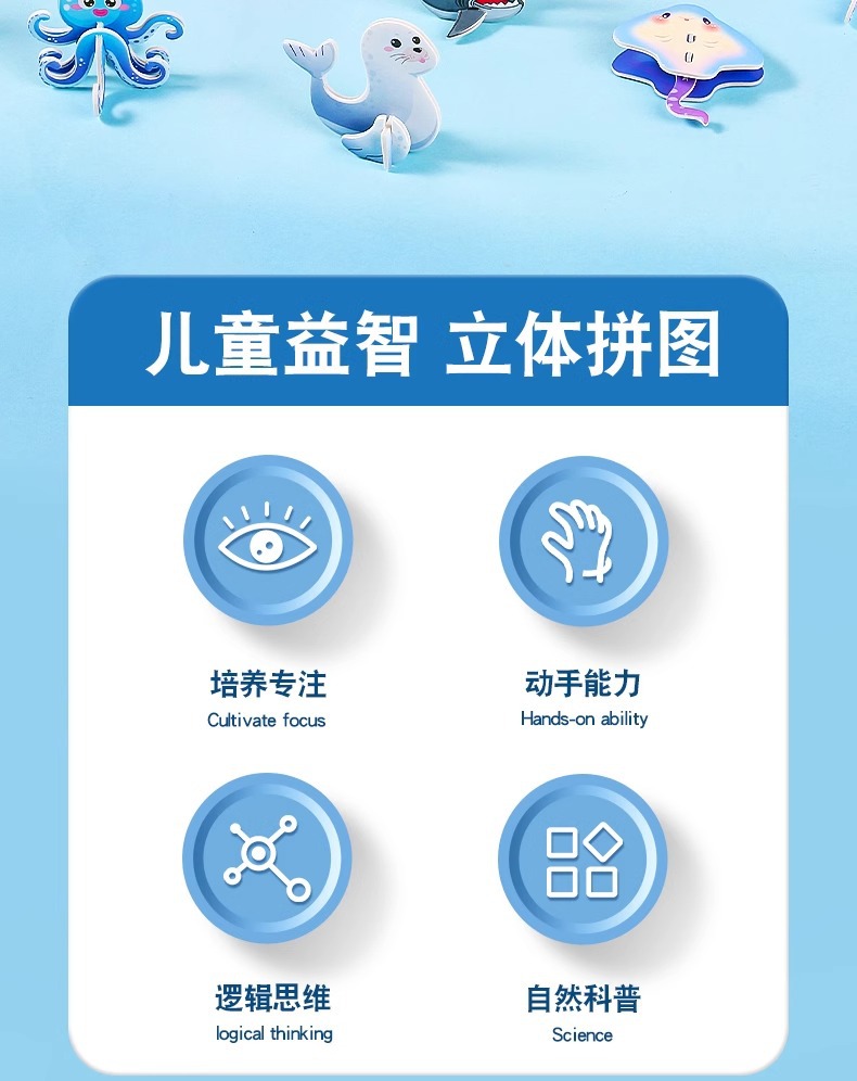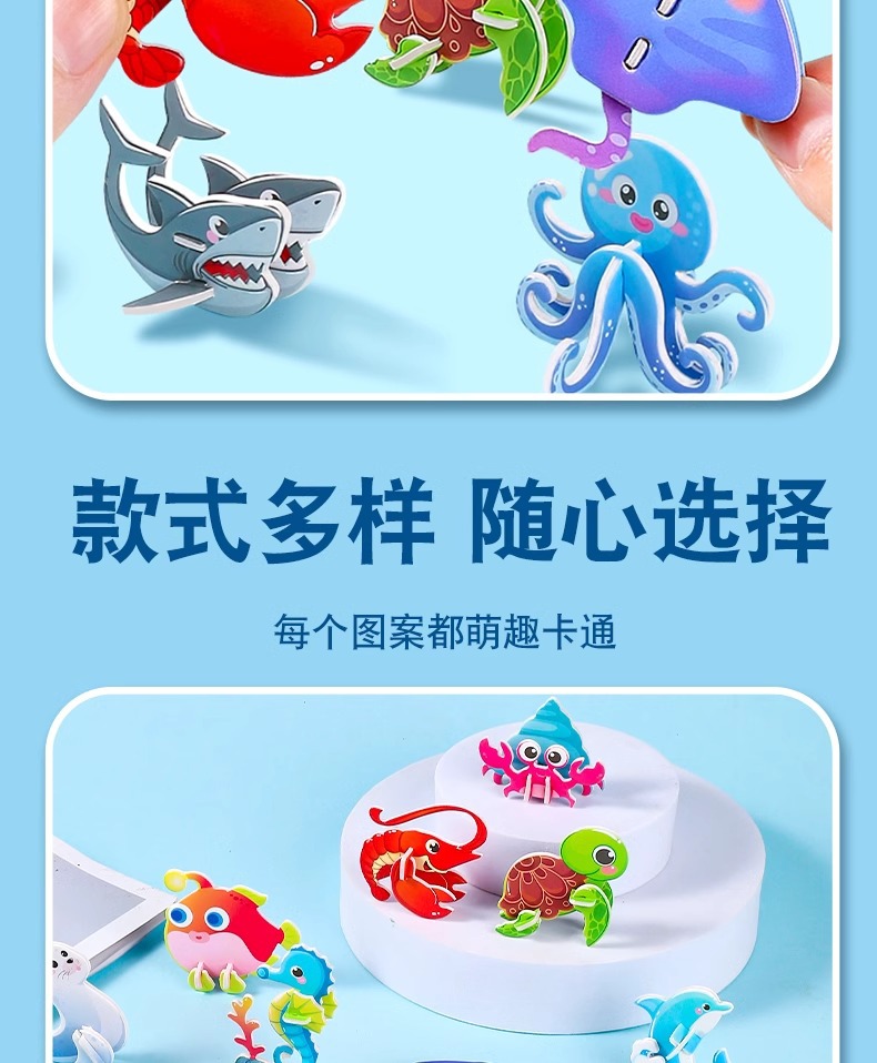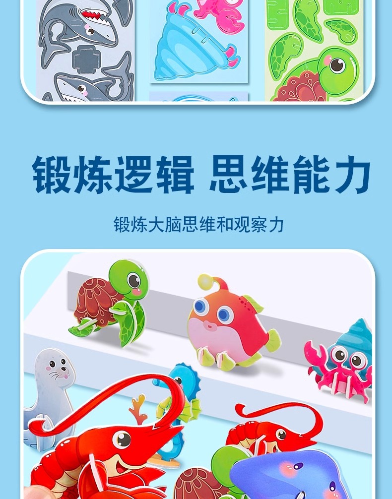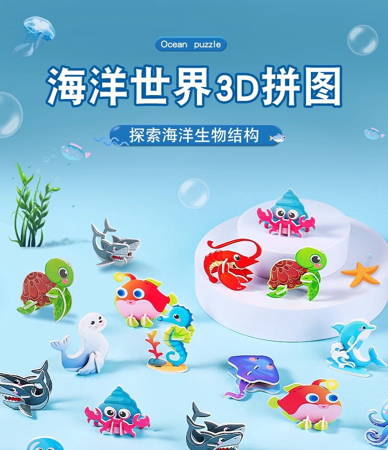 바다 3D 동물 직소 퍼즐 유치원 작은 선물 3 ~ 6 년 된 손으로 조립 된 어린이 교육 장난감스토어 가기