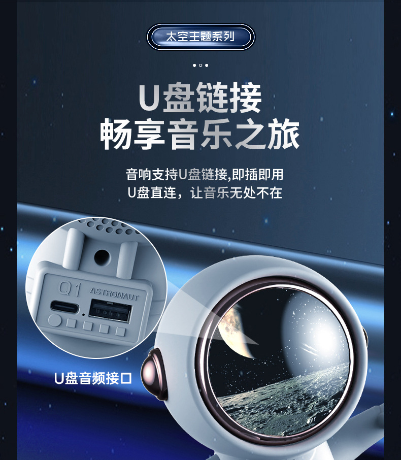 국경 블루투스 스피커 우주 비행사 우주 비행사 홈 휴대용 데스크탑 장식 야간 조명 선물 카드 소형 스피커