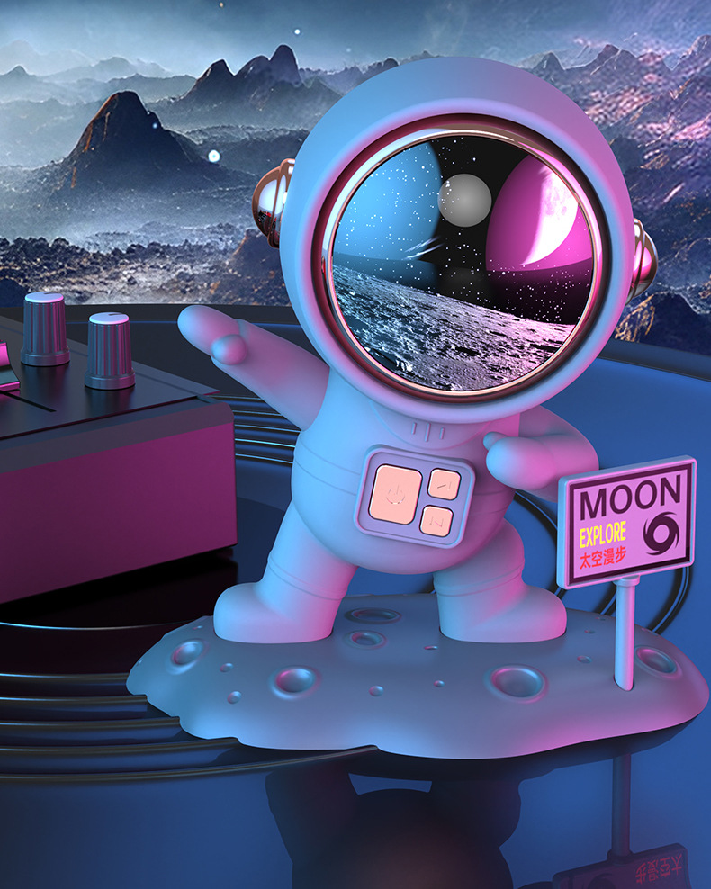 국경 블루투스 스피커 우주 비행사 우주 비행사 홈 휴대용 데스크탑 장식 야간 조명 선물 카드 소형 스피커스토어 가기