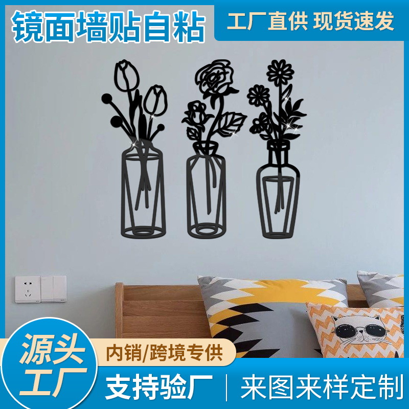 국경 간 새로운 아크릴 벽 스티커 트리플 꽃병 셀프 스티커 배경 벽 거실 어린이 방 거울 장식 그림 스티커스토어 가기