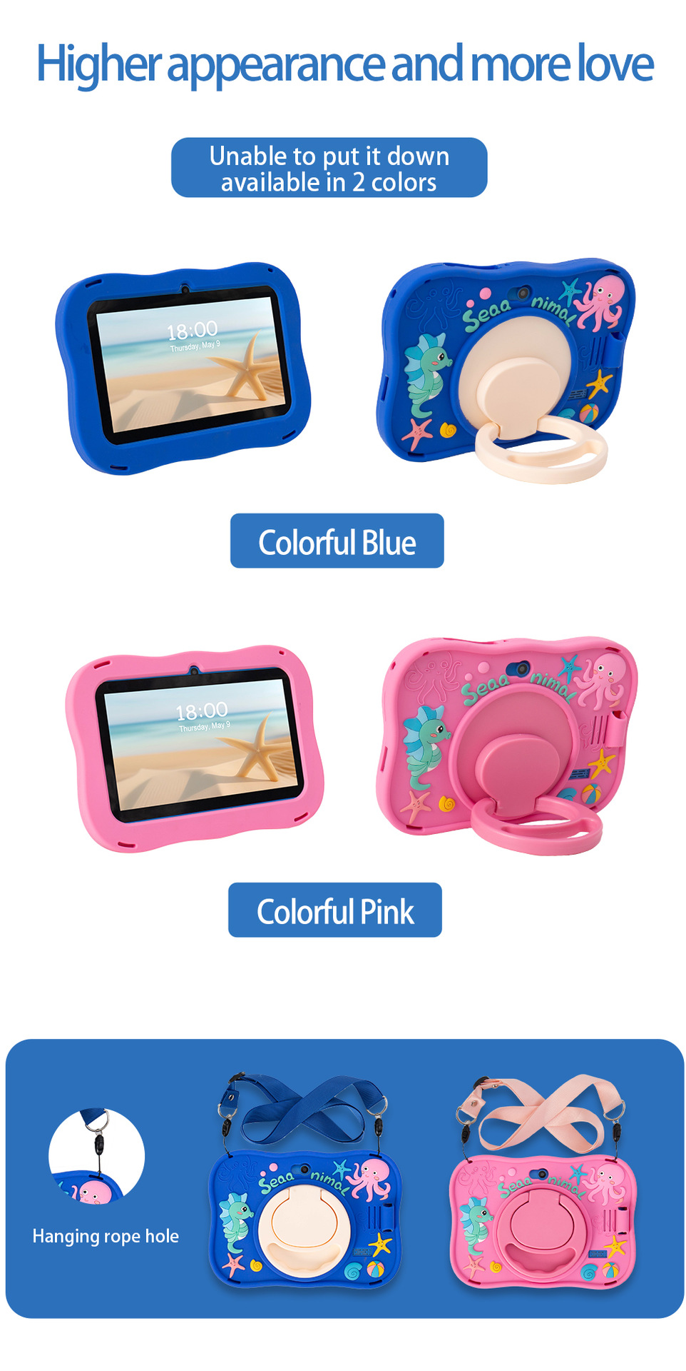 Q88 어린이 태블릿 PC 7 인치 플러그인 카드 WiFi 에디션 2 32 안드로이드 12 외국인 유아 교육 부모 통제 재고스토어 가기