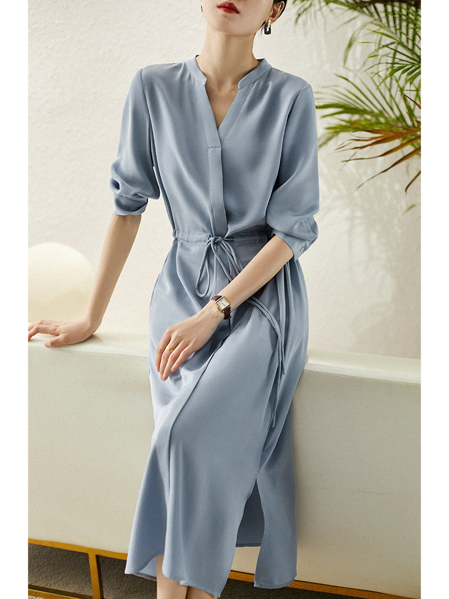 우아한 2 색 높은 허리 슬리밍 24MM 스트레치 무거운 크레이프 모조 실크 셔츠 원피스스토어 가기