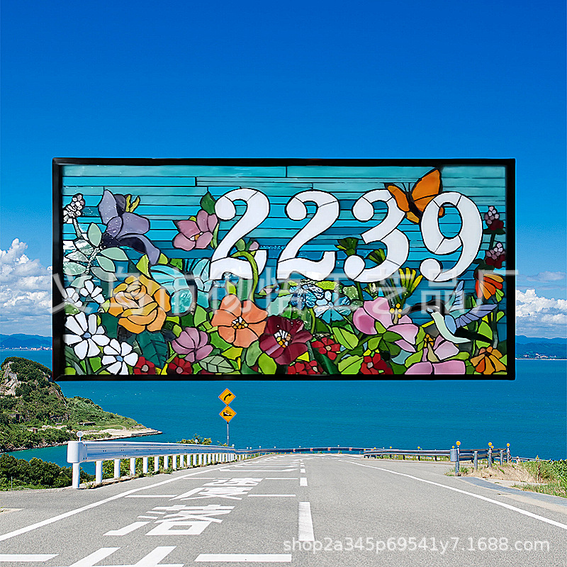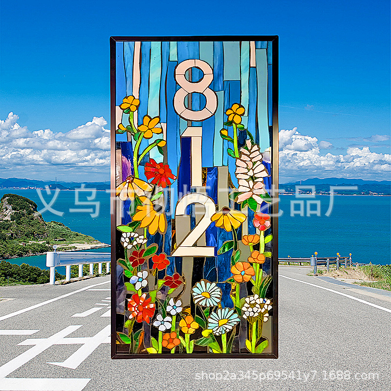 跨境Stained Glass Mosaic House Number亚克力彩色数字门牌挂件