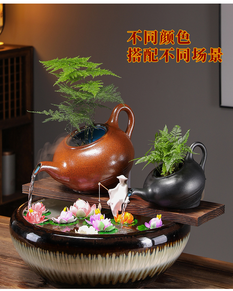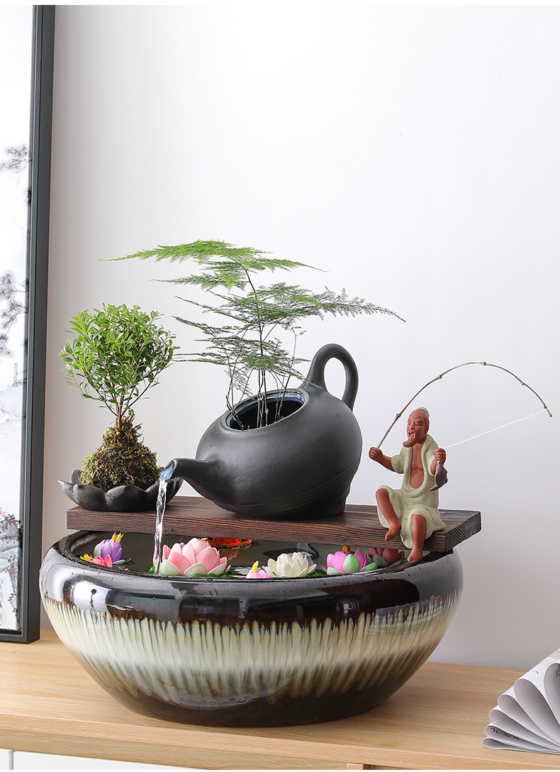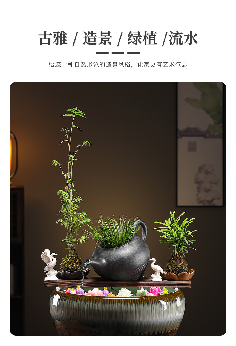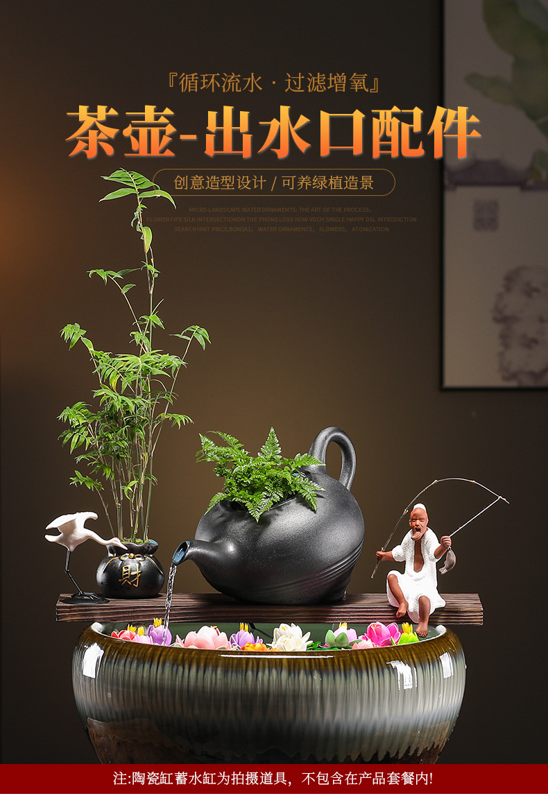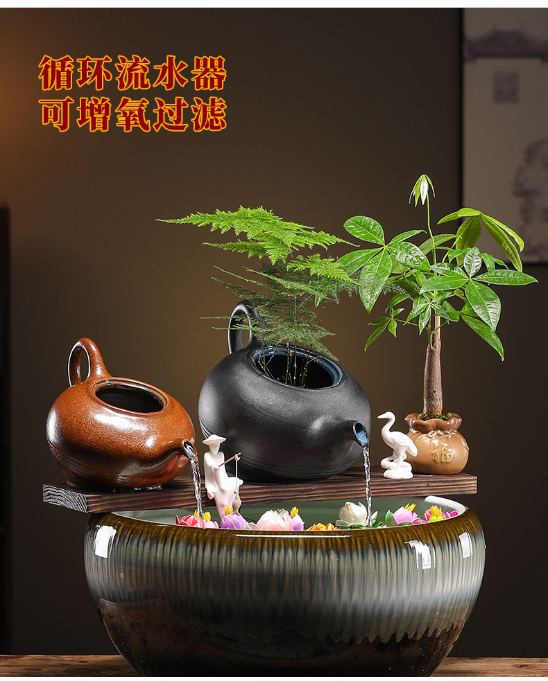 에코 수조 어항 흐르는 물 장식품 중국식 도자기 항아리 정원 조경 장식 물탱크 상부 순환수 부품