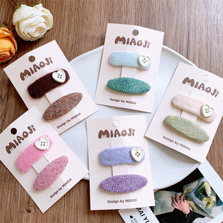 새로운 어린이 사랑 버튼 울 헤어 클립 달콤한 소녀 앞머리 깨진 머리 BB 클립 쌍 사이드 헤어 클립 머리 장식