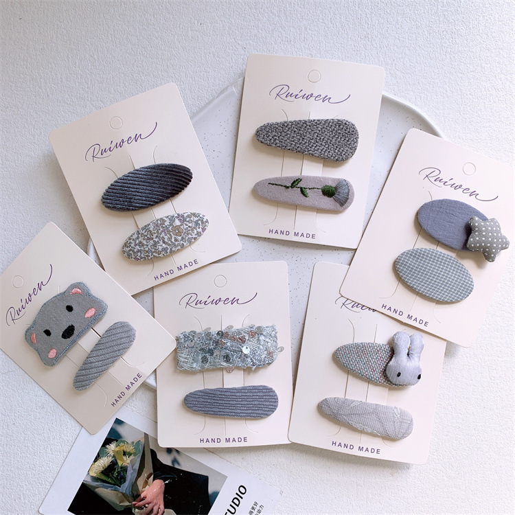 회색 어린이 귀여운 만화 토끼 다섯개 별 헤어핀 달콤한 소녀의 사이드 뱅 깨진 머리 BB 클립 헤어핀