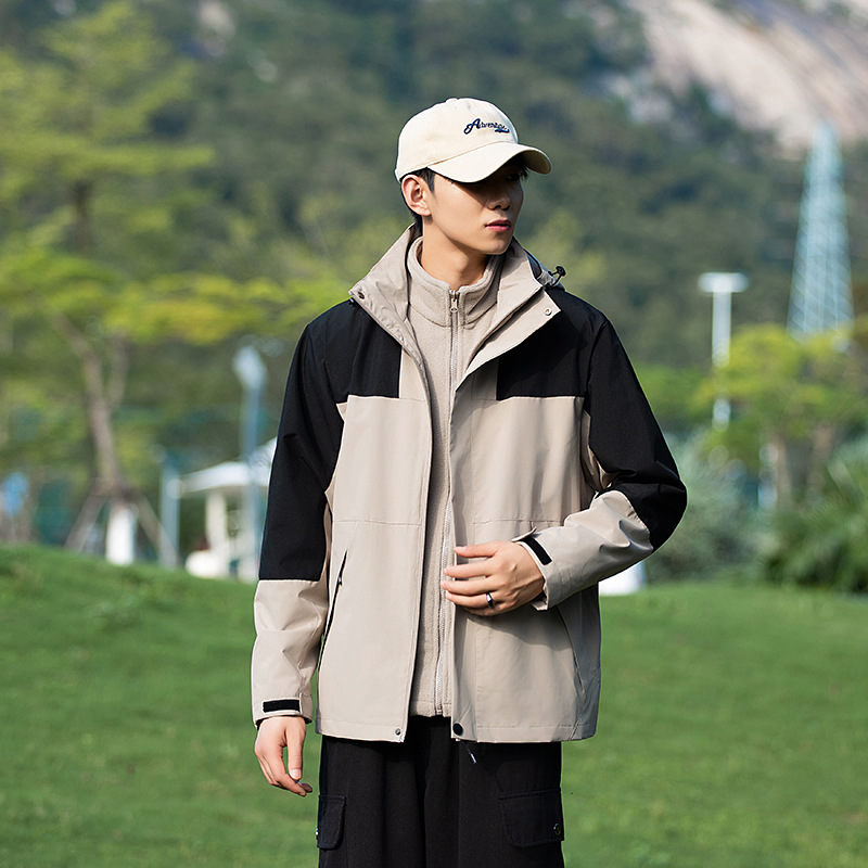 럭키 사슴 컬러 블록 2024 새로운 도착 재킷 오버코트 남녀 분리형 모자 스포츠 트렌디 캐주얼 재킷 가을 옷