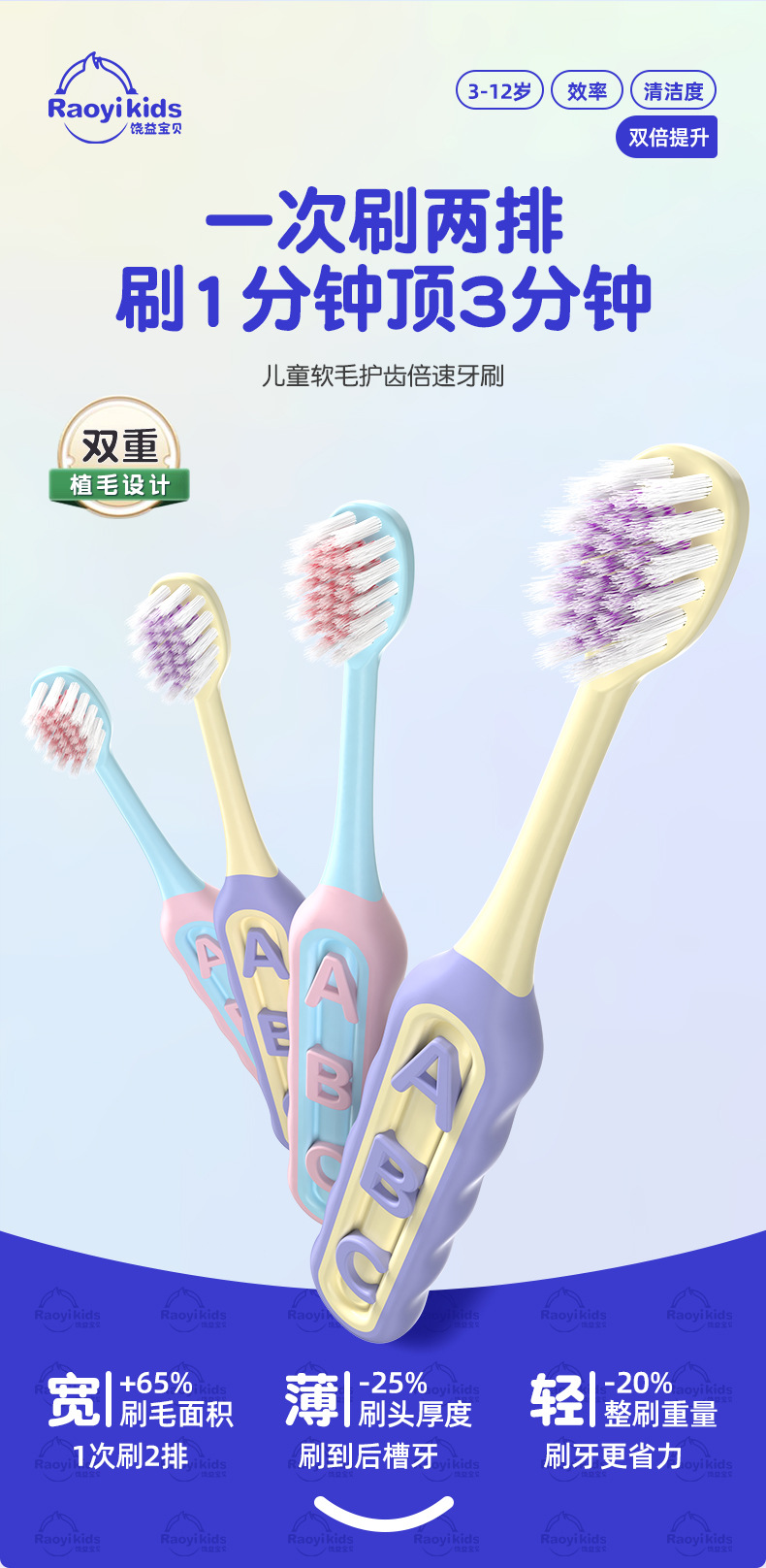 Raoyi 새로운 어린이 칫솔 부드러운 머리 2 3-5 ~ 6-12 세 아기 특별한 부드러운 머리 칫솔 공장 도매스토어 가기