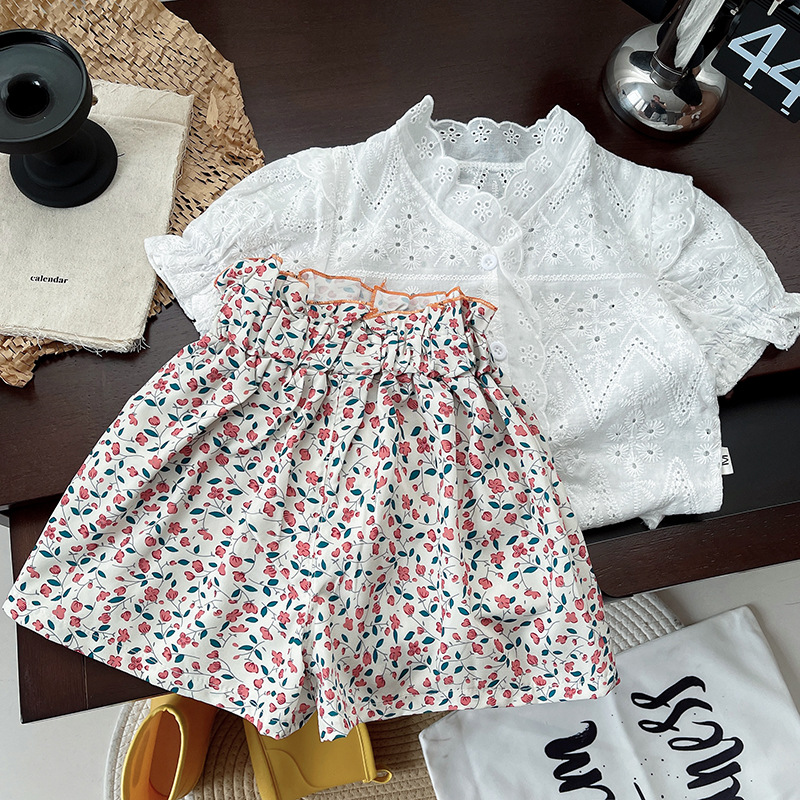 어린이 착용 소녀 목가적 조끼 여름 프랑스 스위트 레이스 탑 페달 반바지 세트 허리스토어 가기