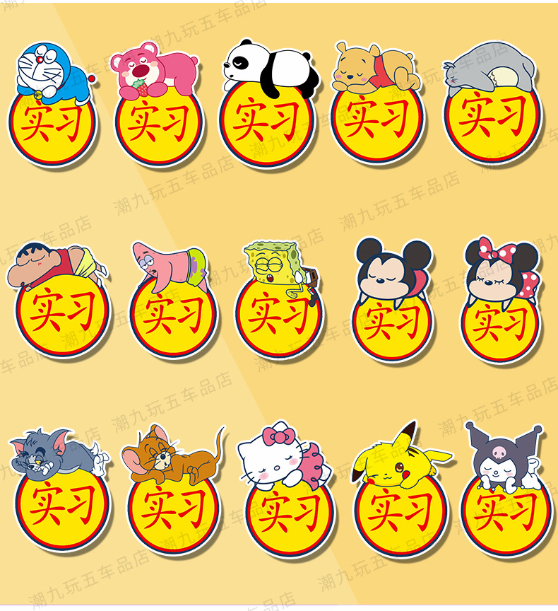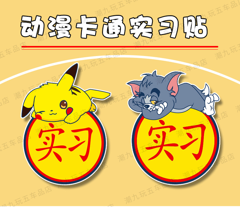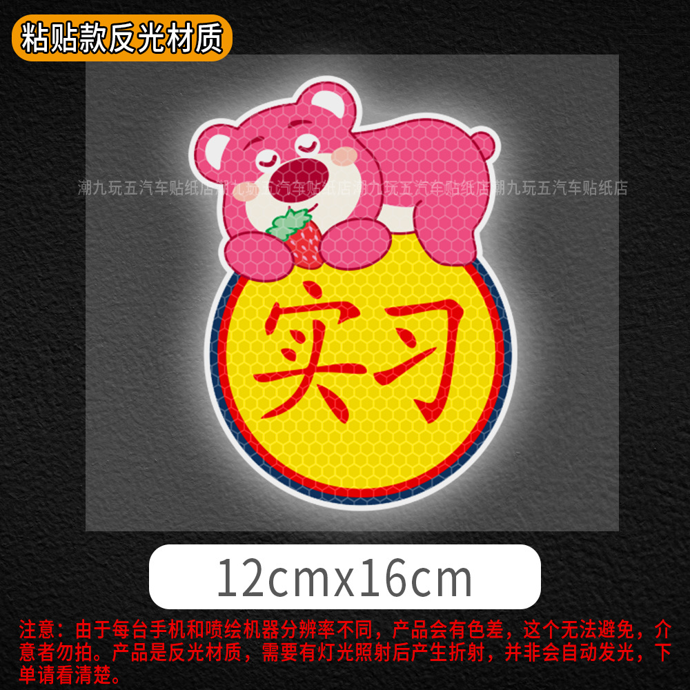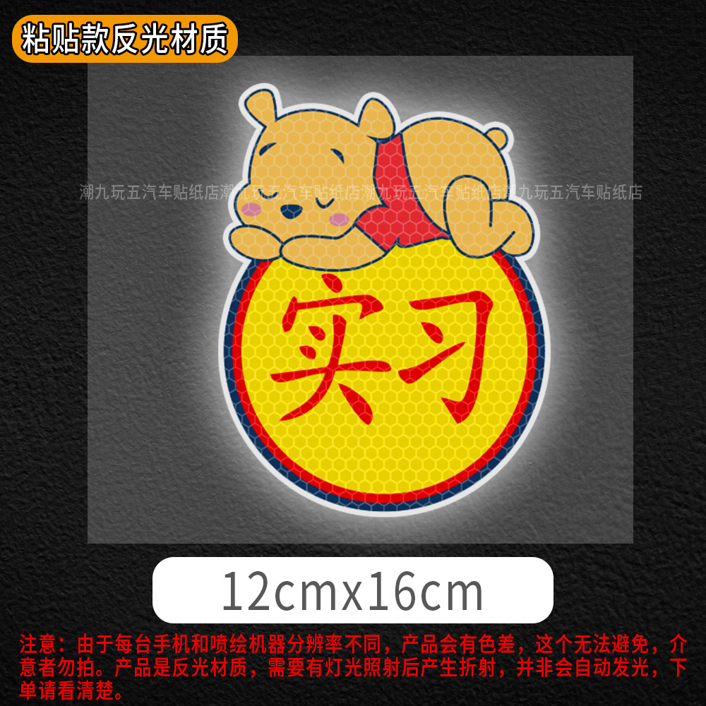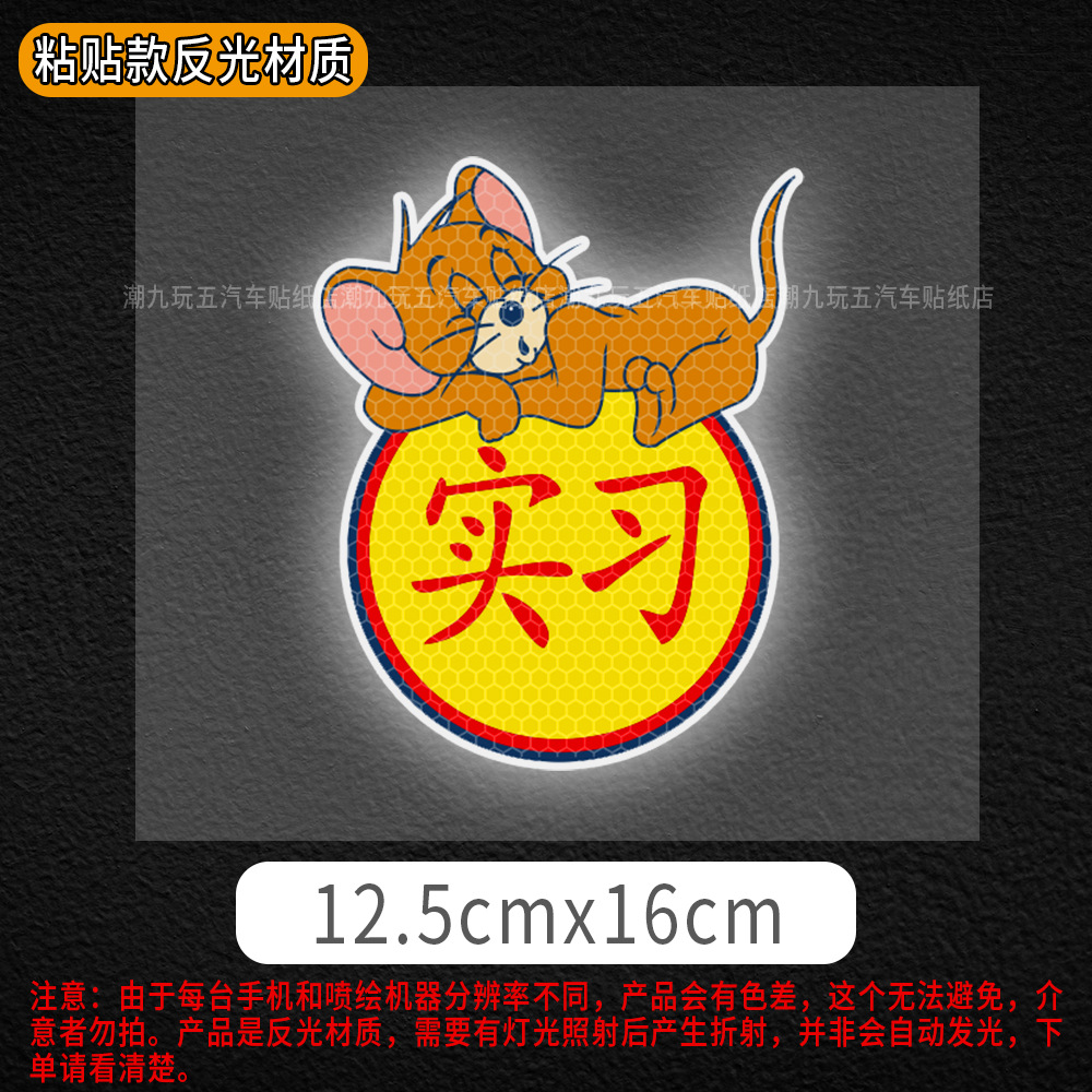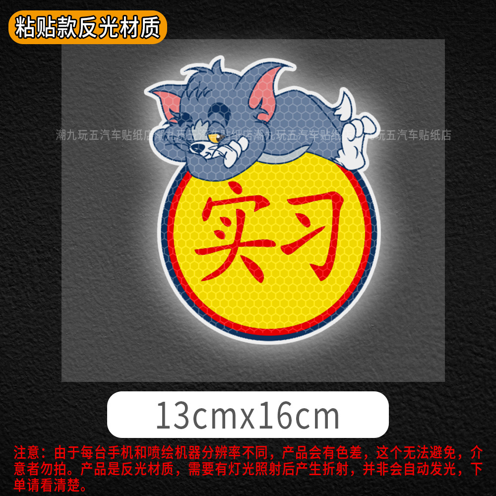 자동차 만화 인턴쉽 마그네틱 스티커 애니메이션 인턴쉽 스티커 도로 반사 자동차 스티커 귀여운 스크래치 폐색 스티커에 초보자