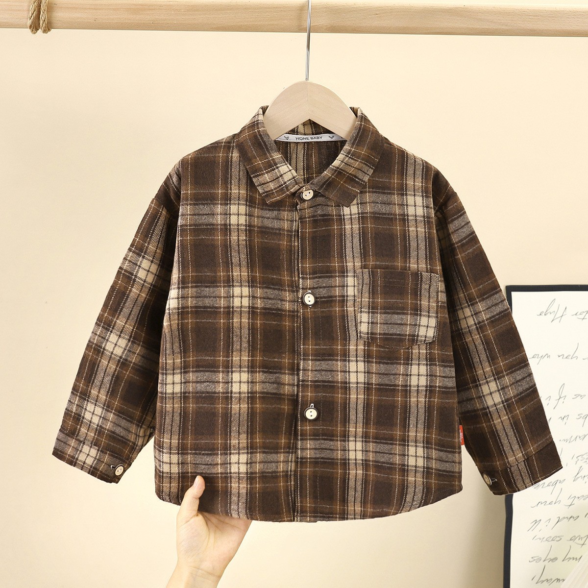 2025 새로운 국경 어린이 긴팔 셔츠 격자 무늬 봄, 가을 탑 카디건 서양식 셔츠 봄 가을 후드스토어 가기