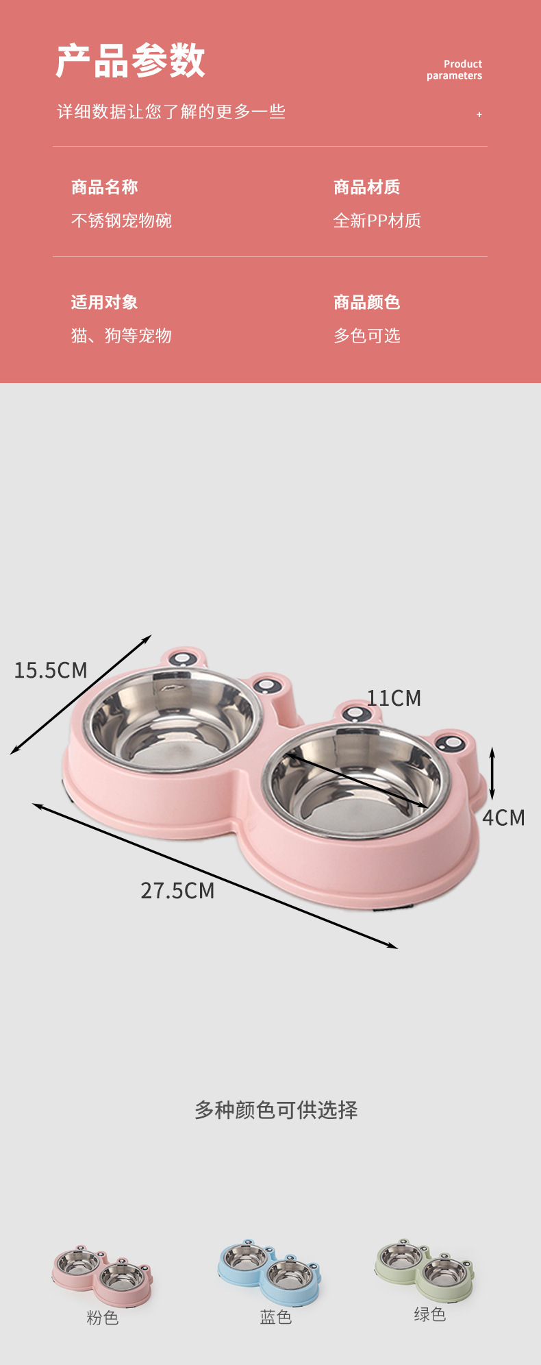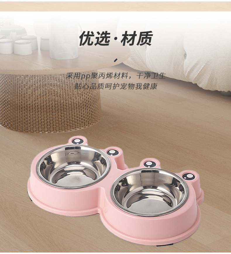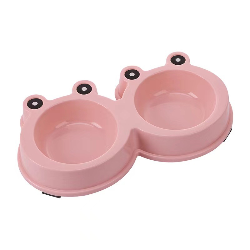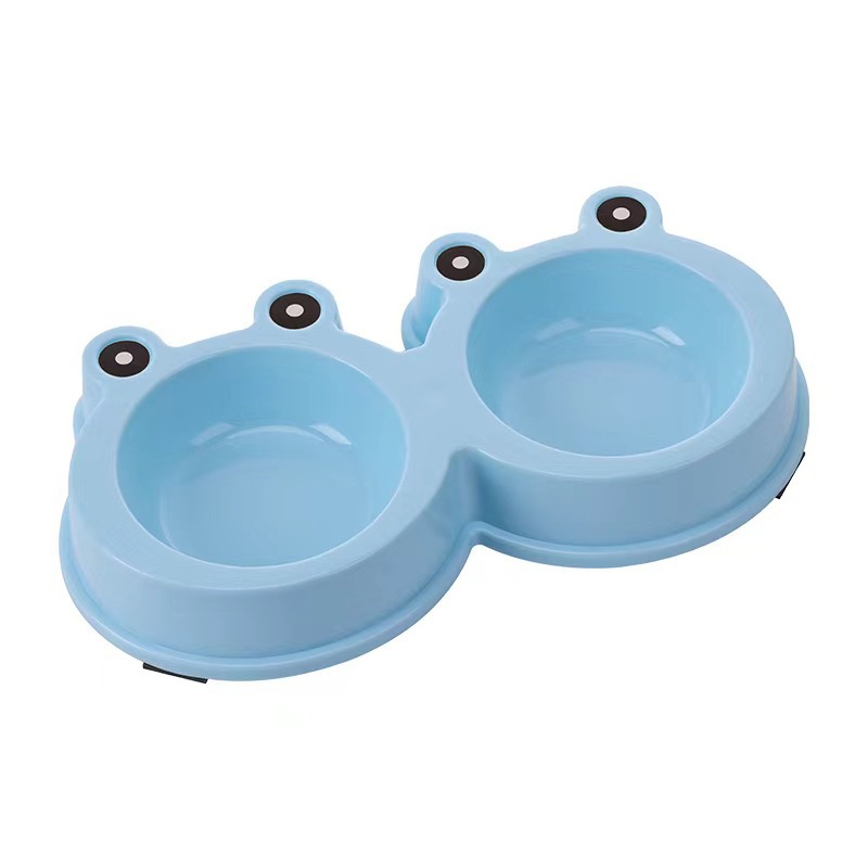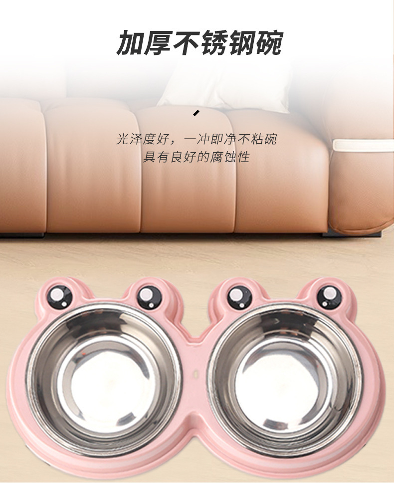 국경 간 새로운 애완 동물 그릇 만화 큰 눈 개구리 더블 그릇 애완 동물 스테인레스 스틸 그릇 고양이 그릇 애완 동물 용품