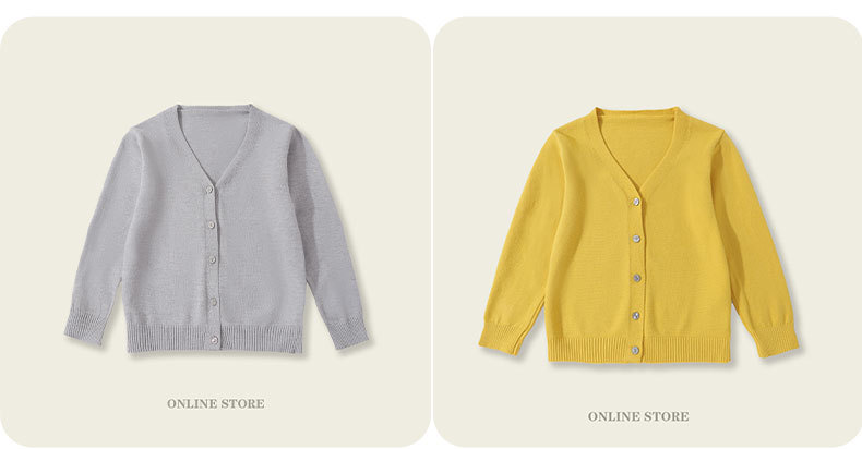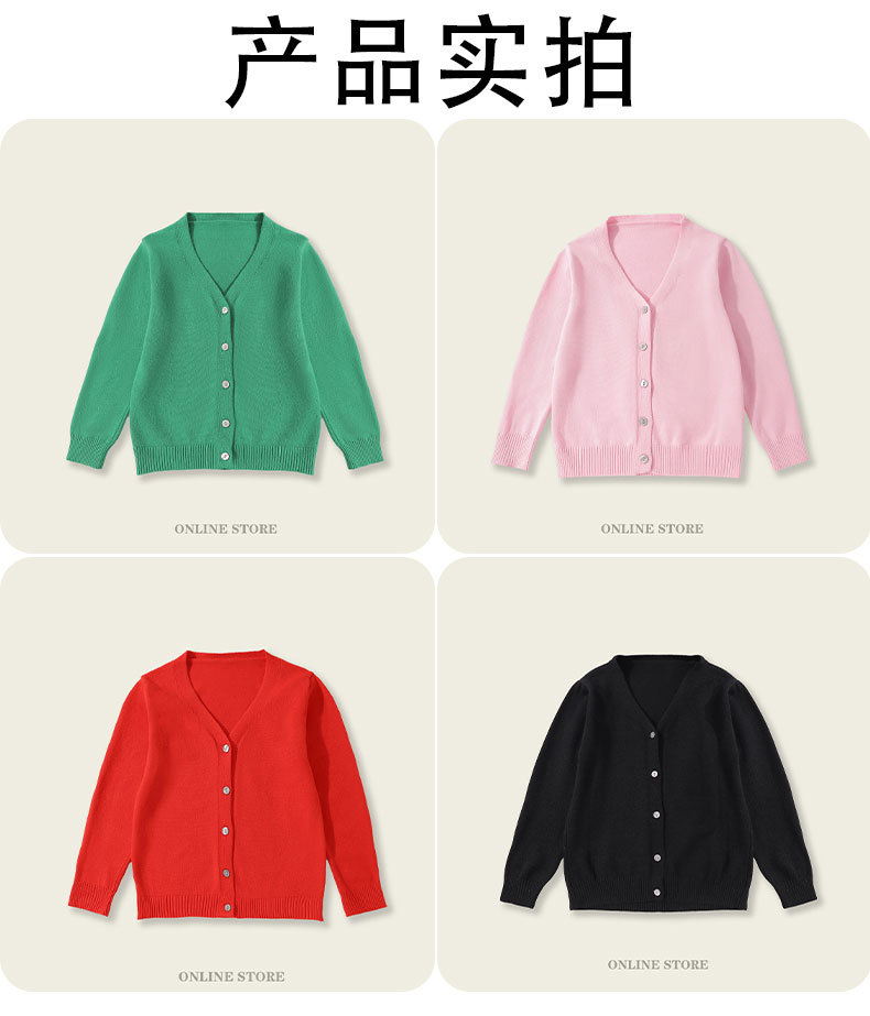 2025 봄, 가을 어린이 니트 가디건 중대형 어린이 단색 V 넥 소녀 스웨터 한국 스타일 얇은 소년상의스토어 가기
