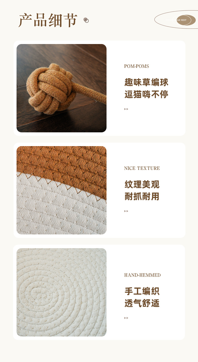• 고양이 귀 라운드 코튼 로프 둥지 35cm