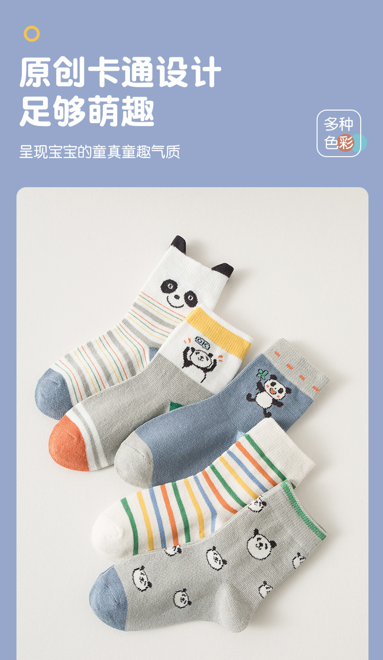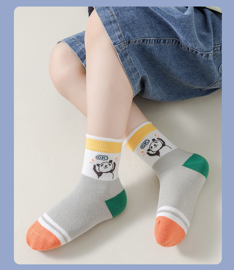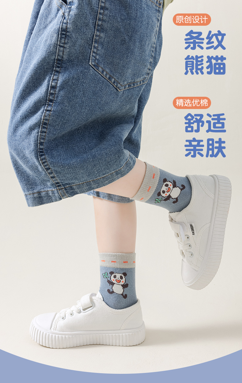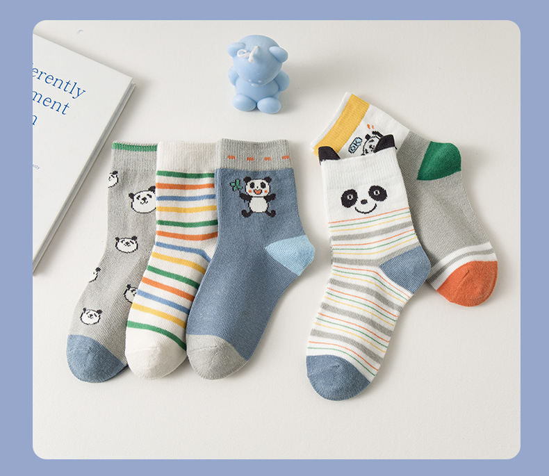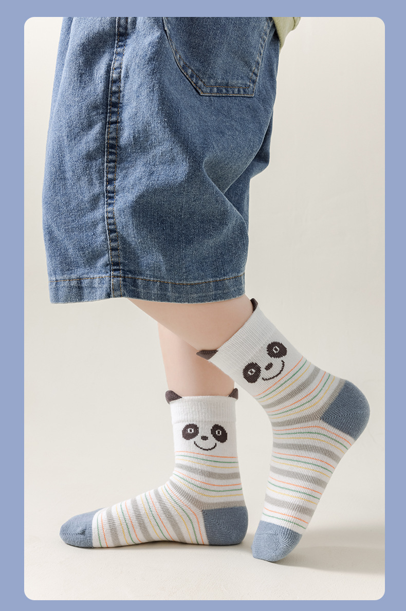 가을과 겨울 새로운 어린이 양말 도매 귀여운 만화 면 양말 줄무늬 자이언트 팬더 소년 소녀 양말 봄과 가을스토어 가기