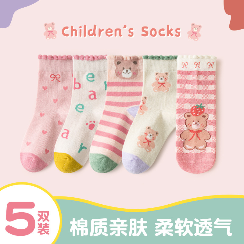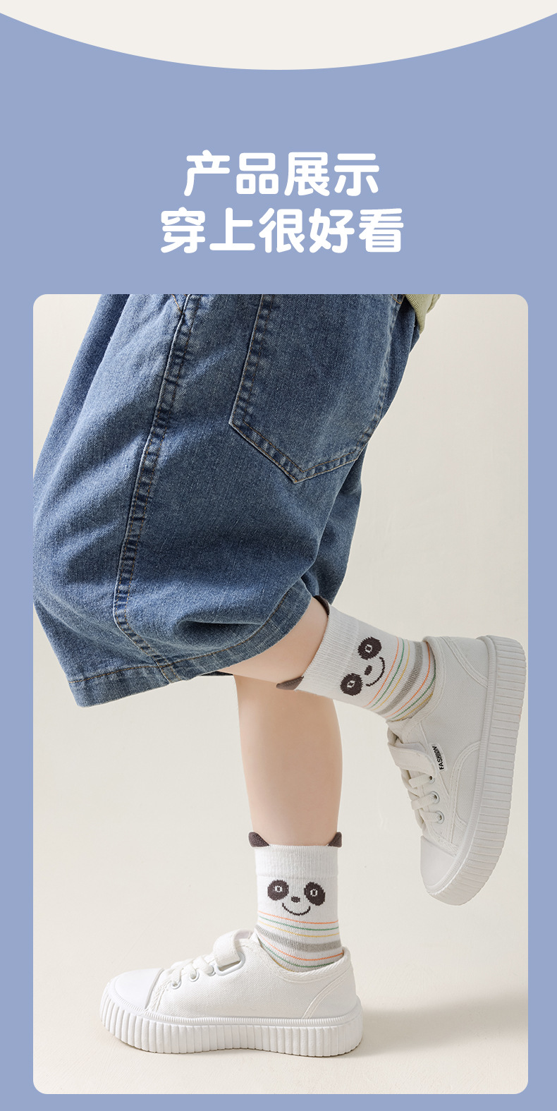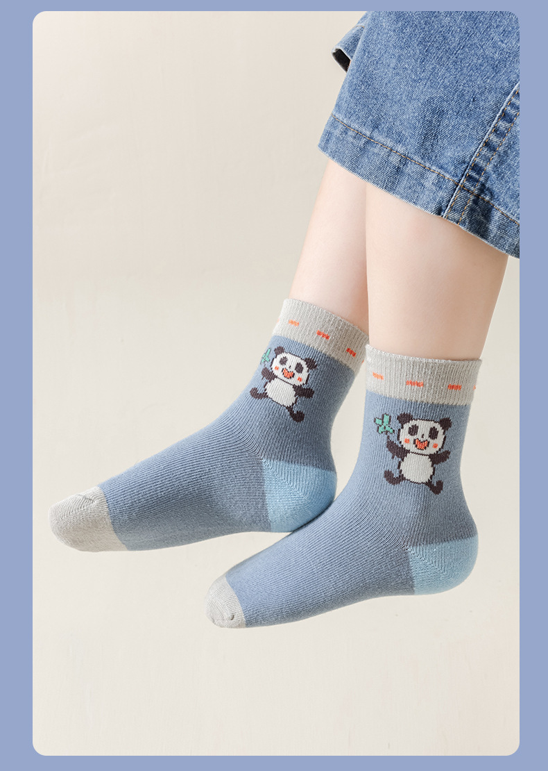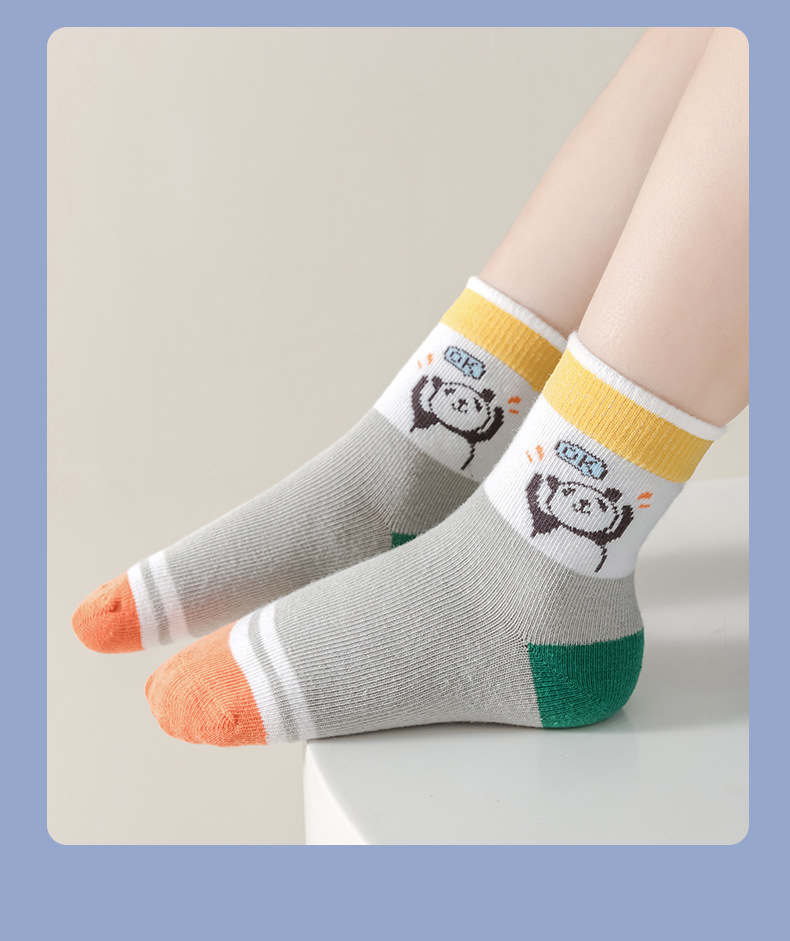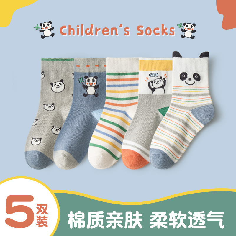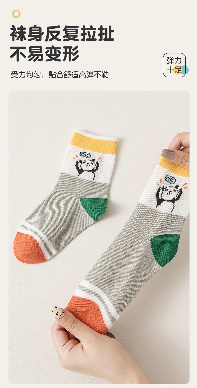 가을과 겨울 새로운 어린이 양말 도매 귀여운 만화 면 양말 줄무늬 자이언트 팬더 소년 소녀 양말 봄과 가을스토어 가기