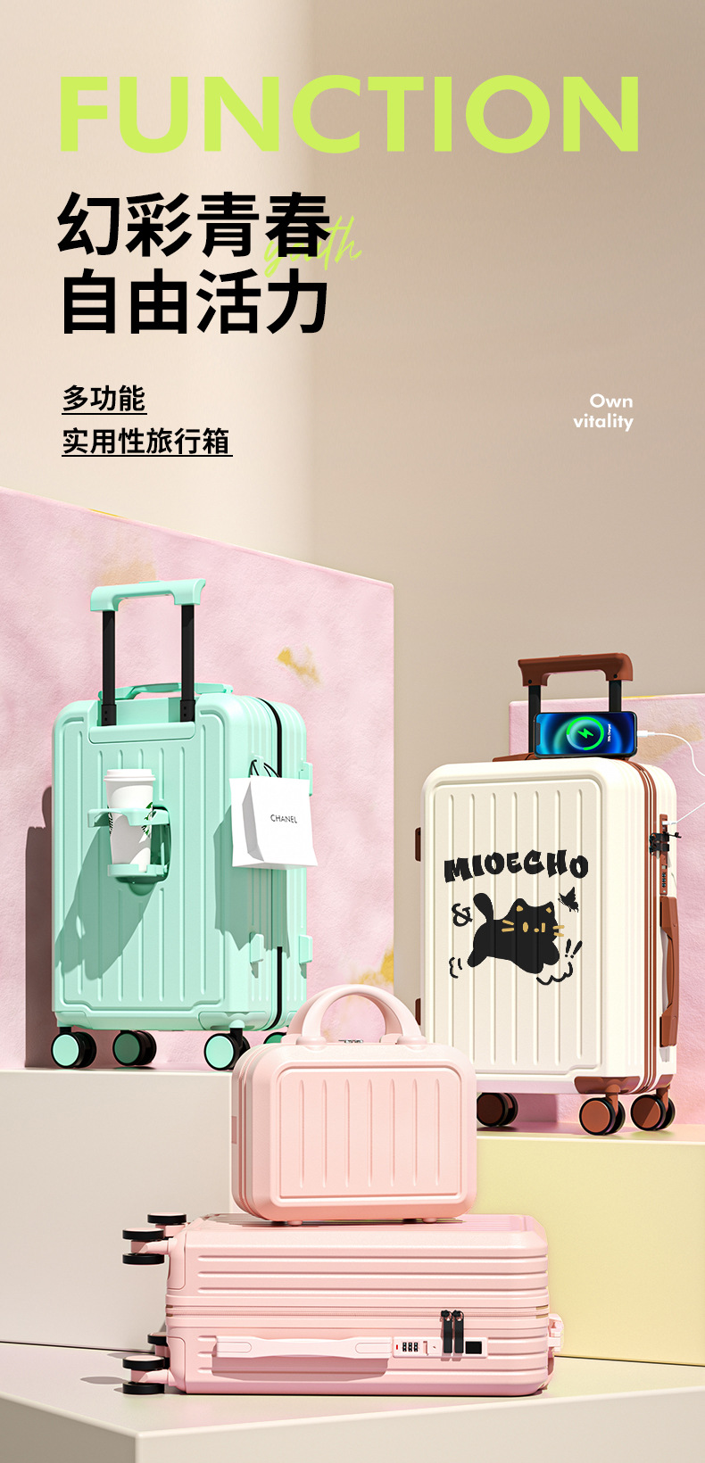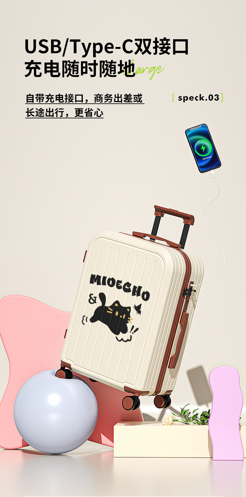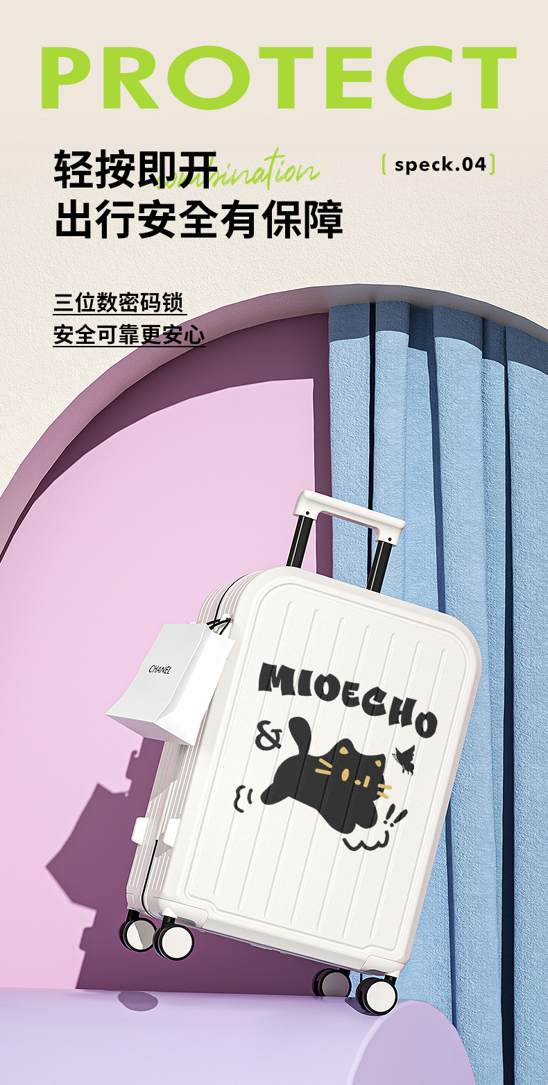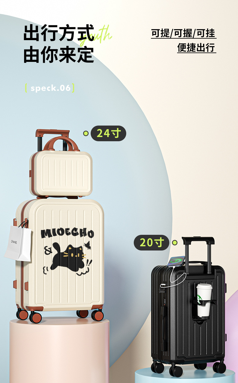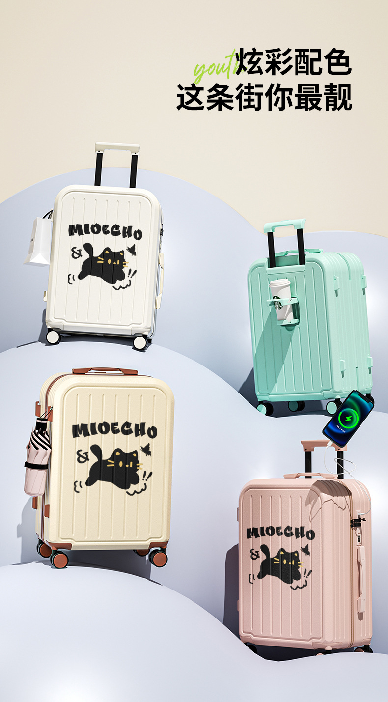 20 인치 수하물 트롤리 탑승 상자 만화 새끼 고양이 암호 상자 조용한 유니버설 휠 여행 상자 도매스토어 가기