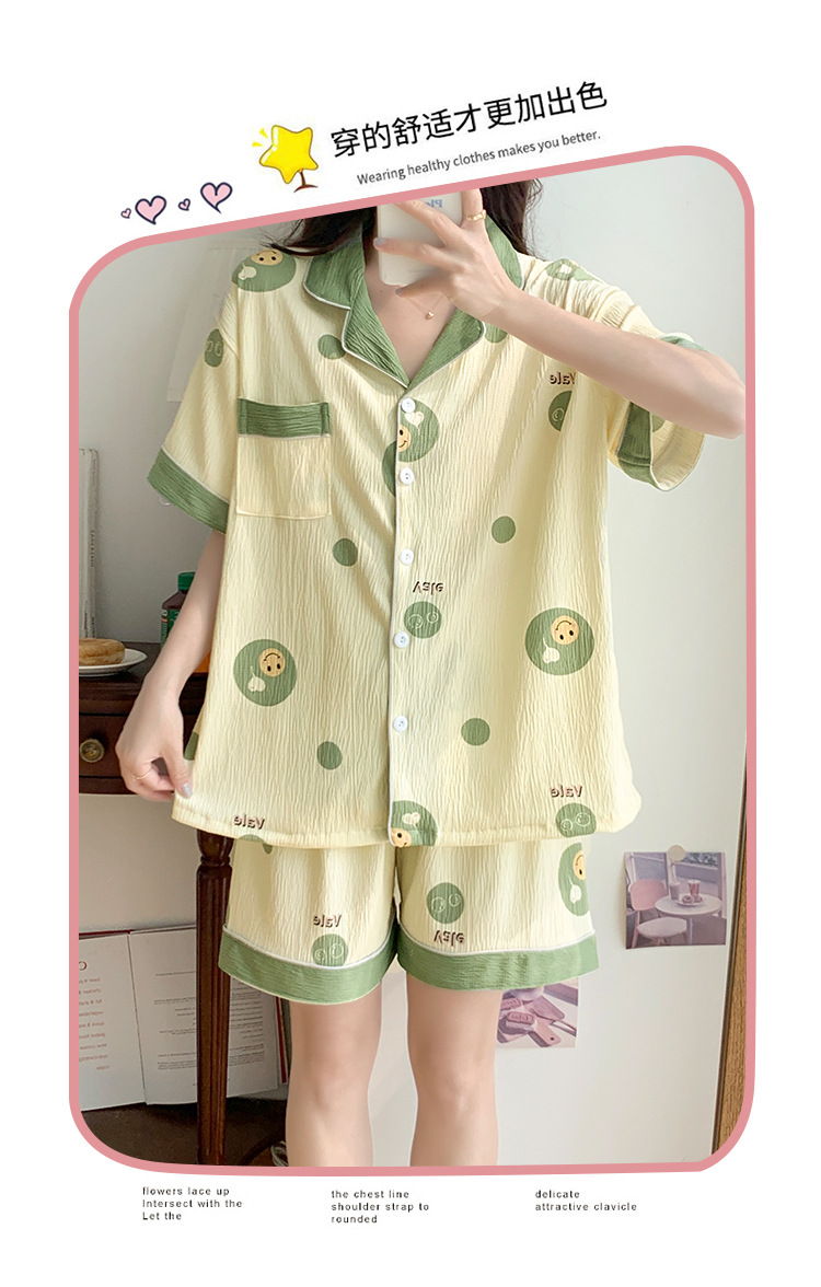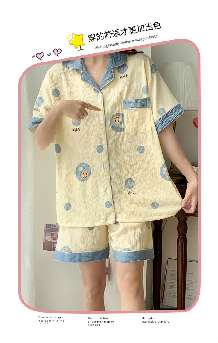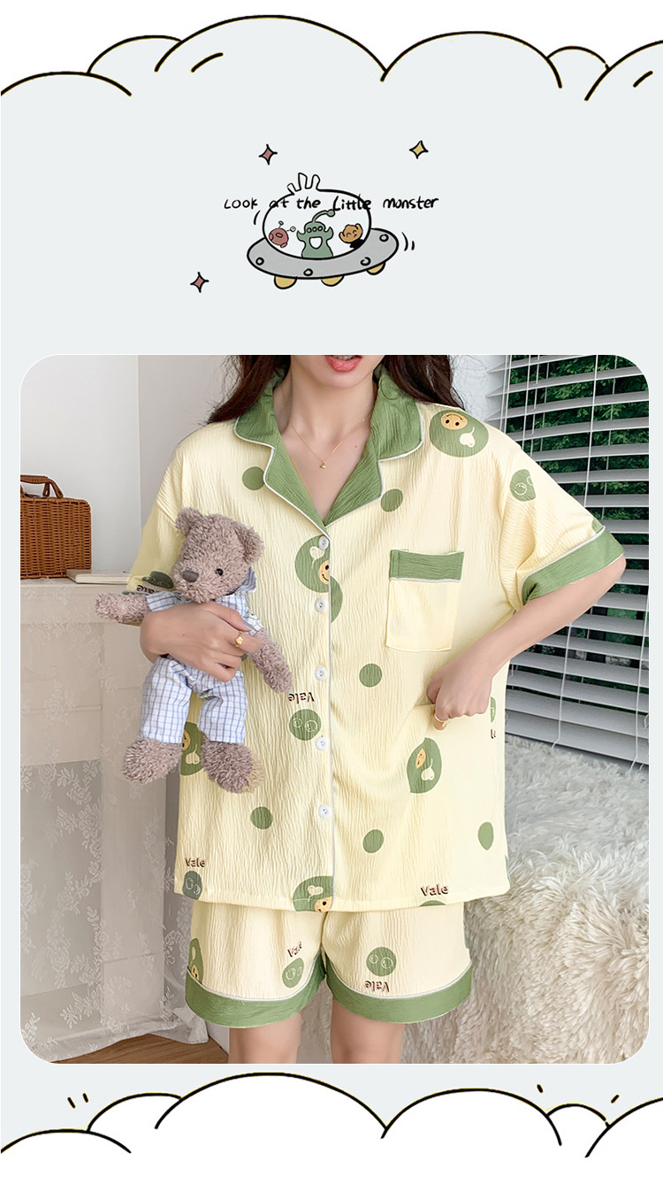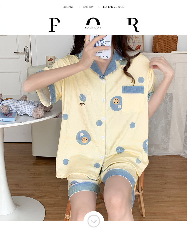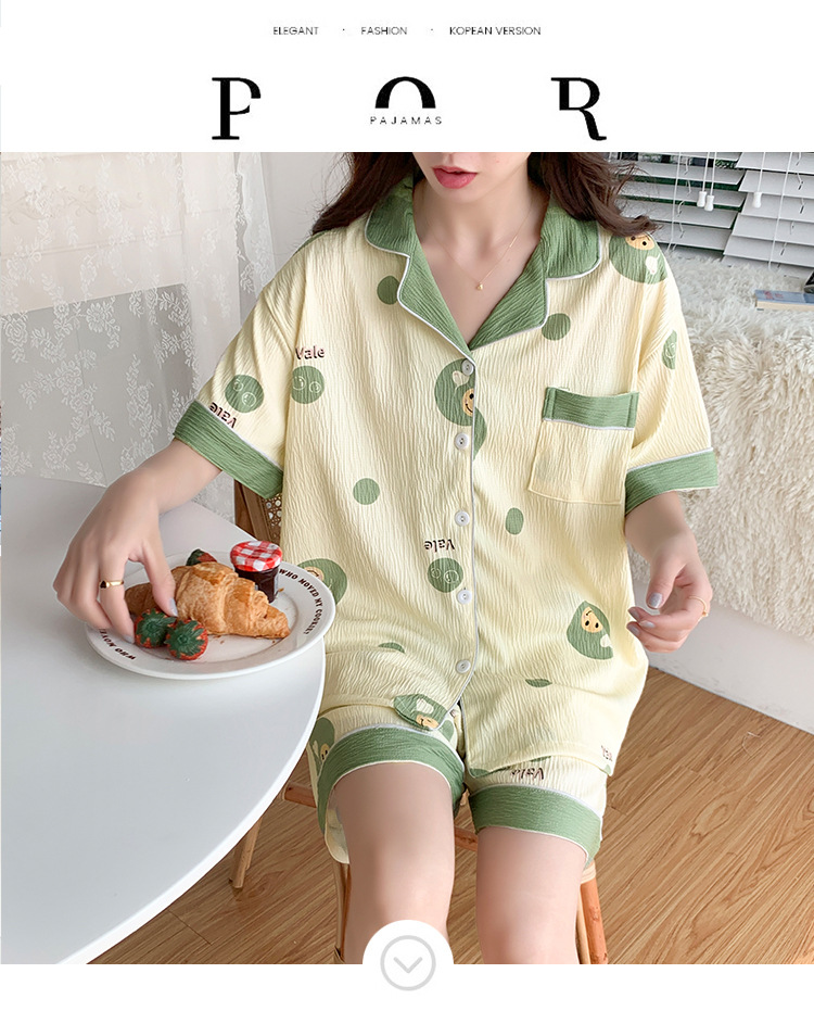 주름진 천 파자마 여성 2024 년 여름 달콤한 한국식 카디건 반바지와 220kg 통통녀 가정용 옷은 밖에서 입을 수 있습니다.스토어 가기