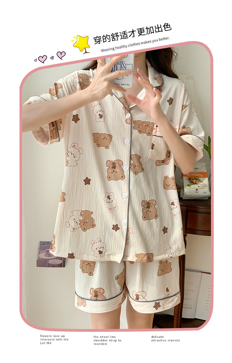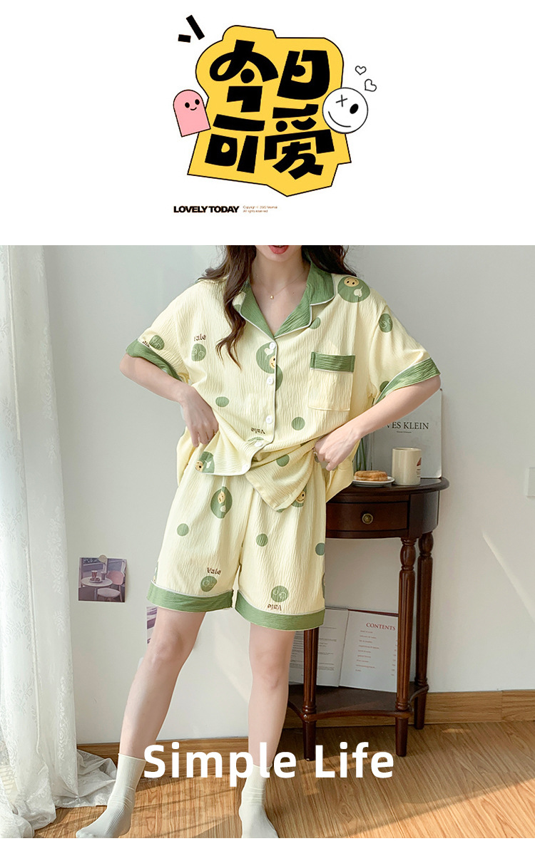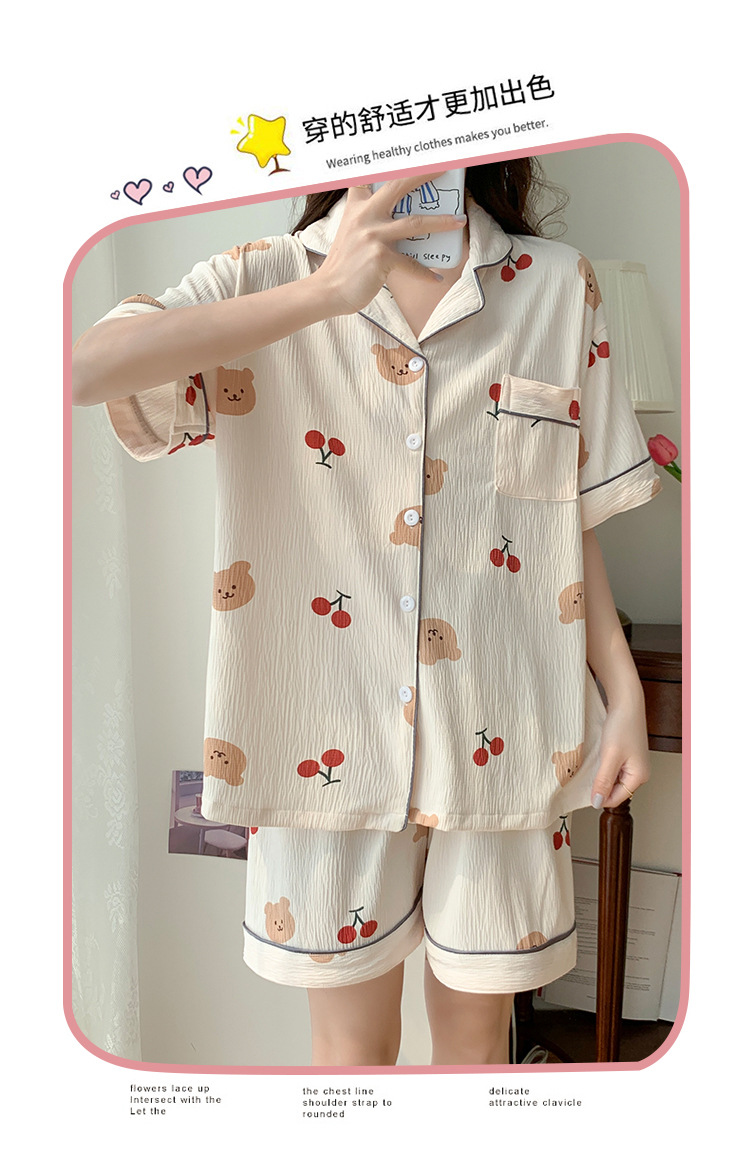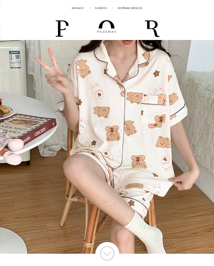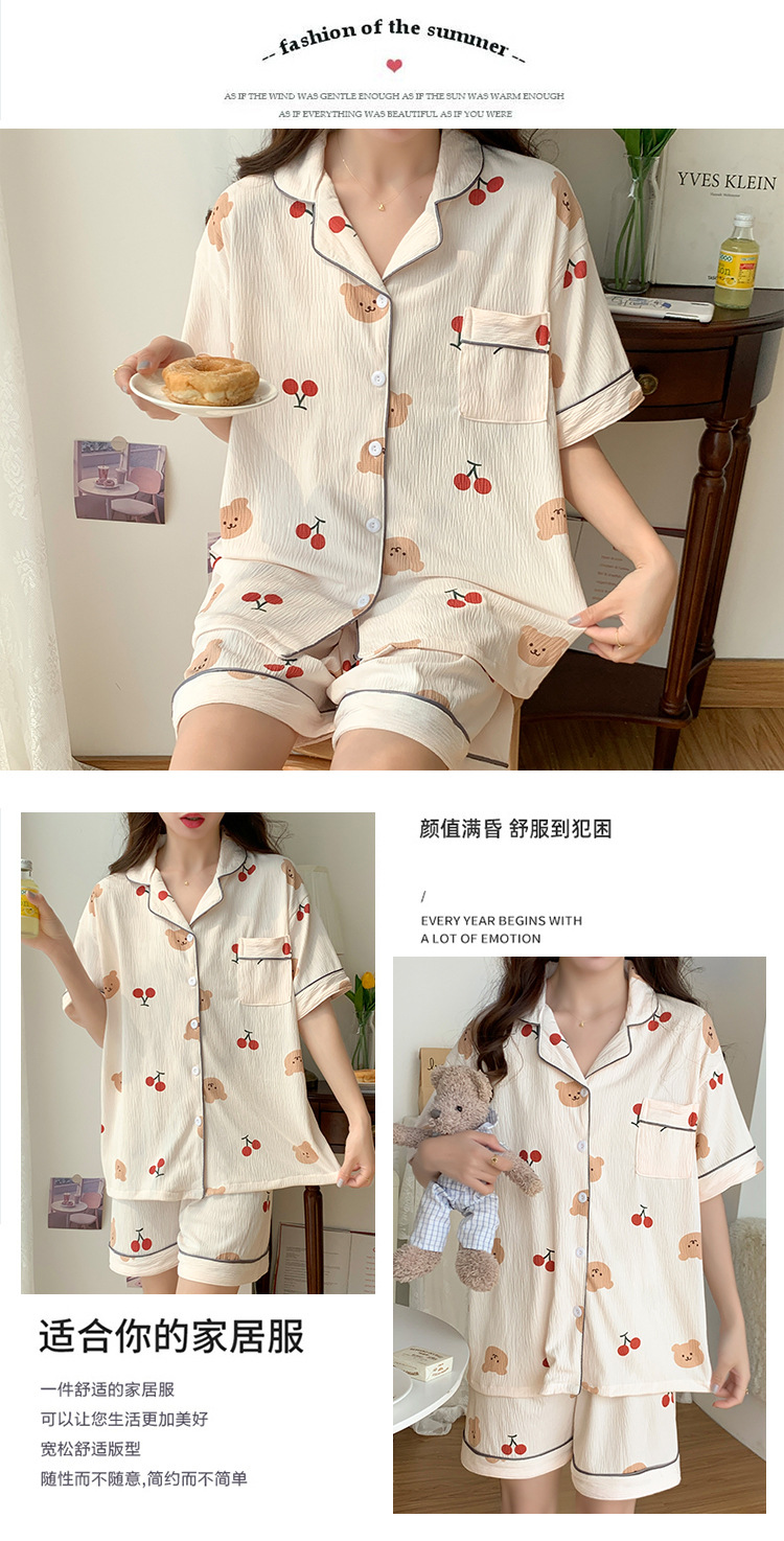 주름진 천 파자마 여성 2024 년 여름 달콤한 한국식 카디건 반바지와 220kg 통통녀 가정용 옷은 밖에서 입을 수 있습니다.스토어 가기