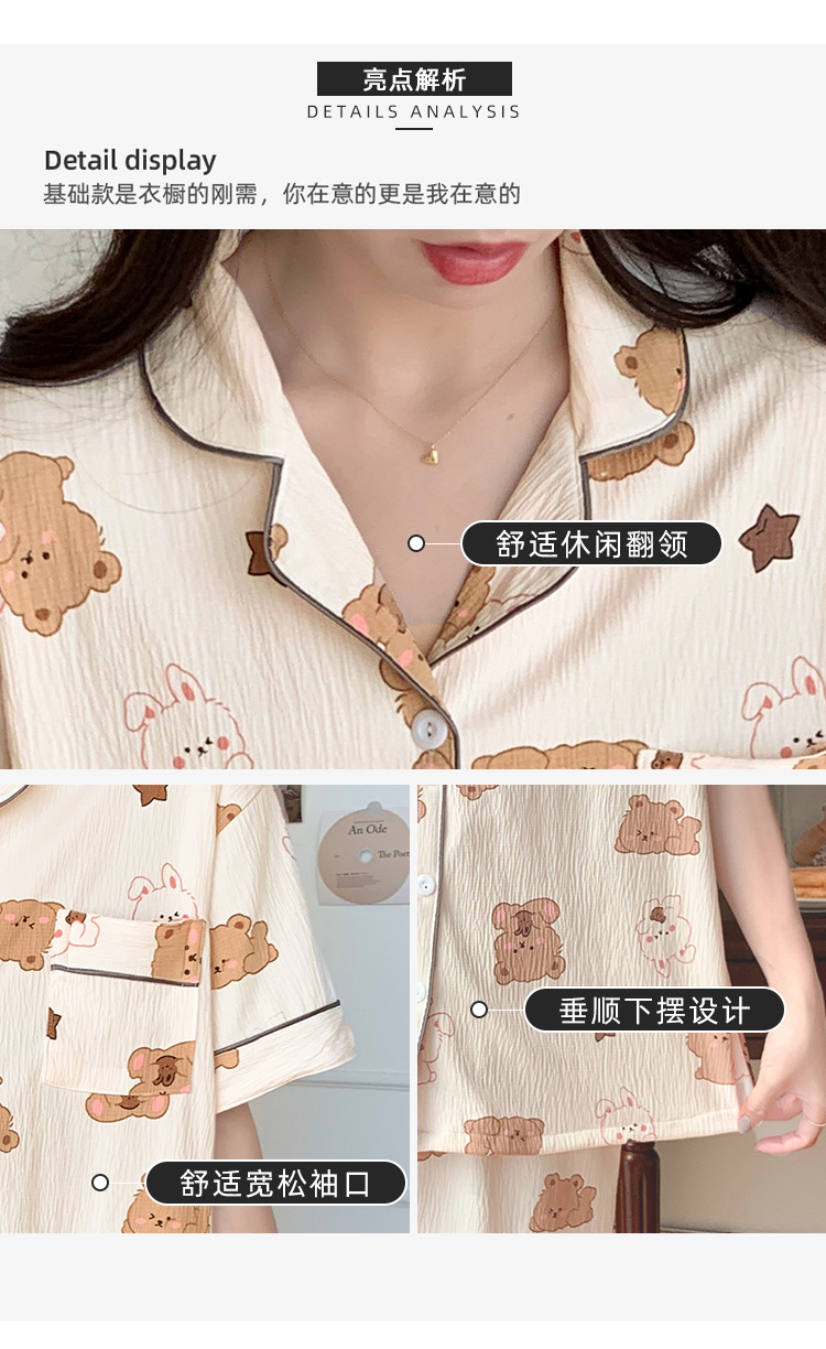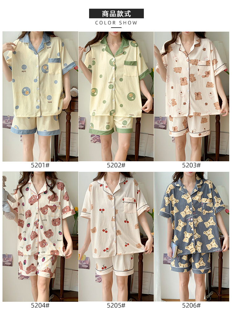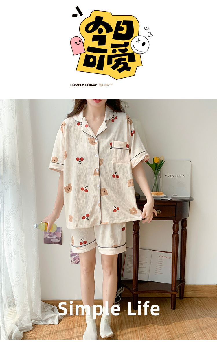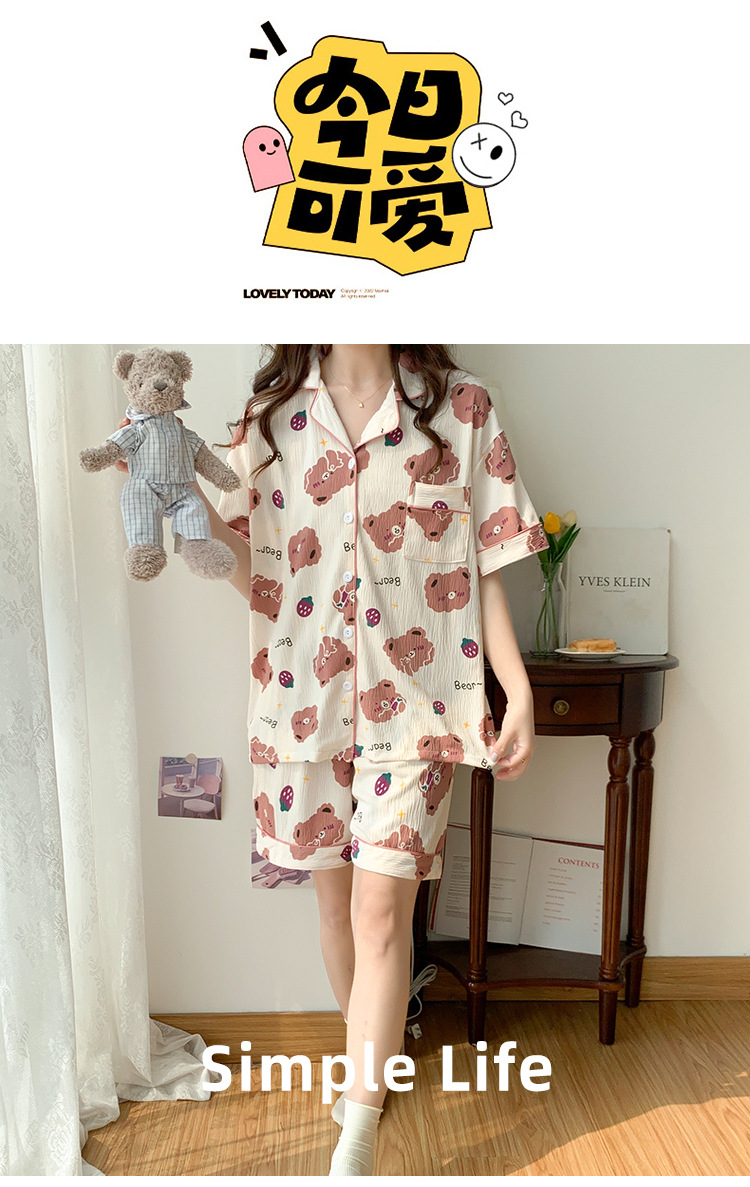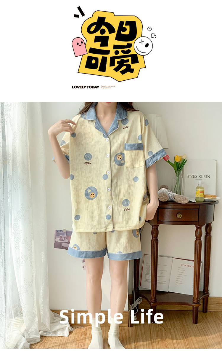 주름진 천 파자마 여성 2024 년 여름 달콤한 한국식 카디건 반바지와 220kg 통통녀 가정용 옷은 밖에서 입을 수 있습니다.스토어 가기