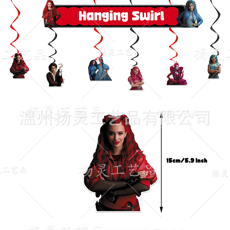 1 set Party Spirals Decor (6 Hanging Cards+6 Single Spirals: 3 Black and 3 Red)