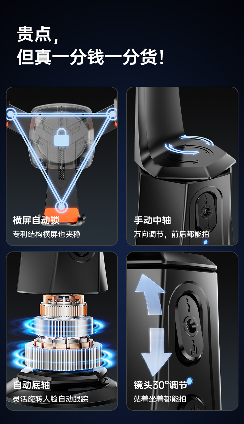 새로운 S1 자기 중력 후속 PTZ 원격 제어 AI 스마트 폰 PTZ가 장착 된 브래킷이있는 완전 자동 후속 유물