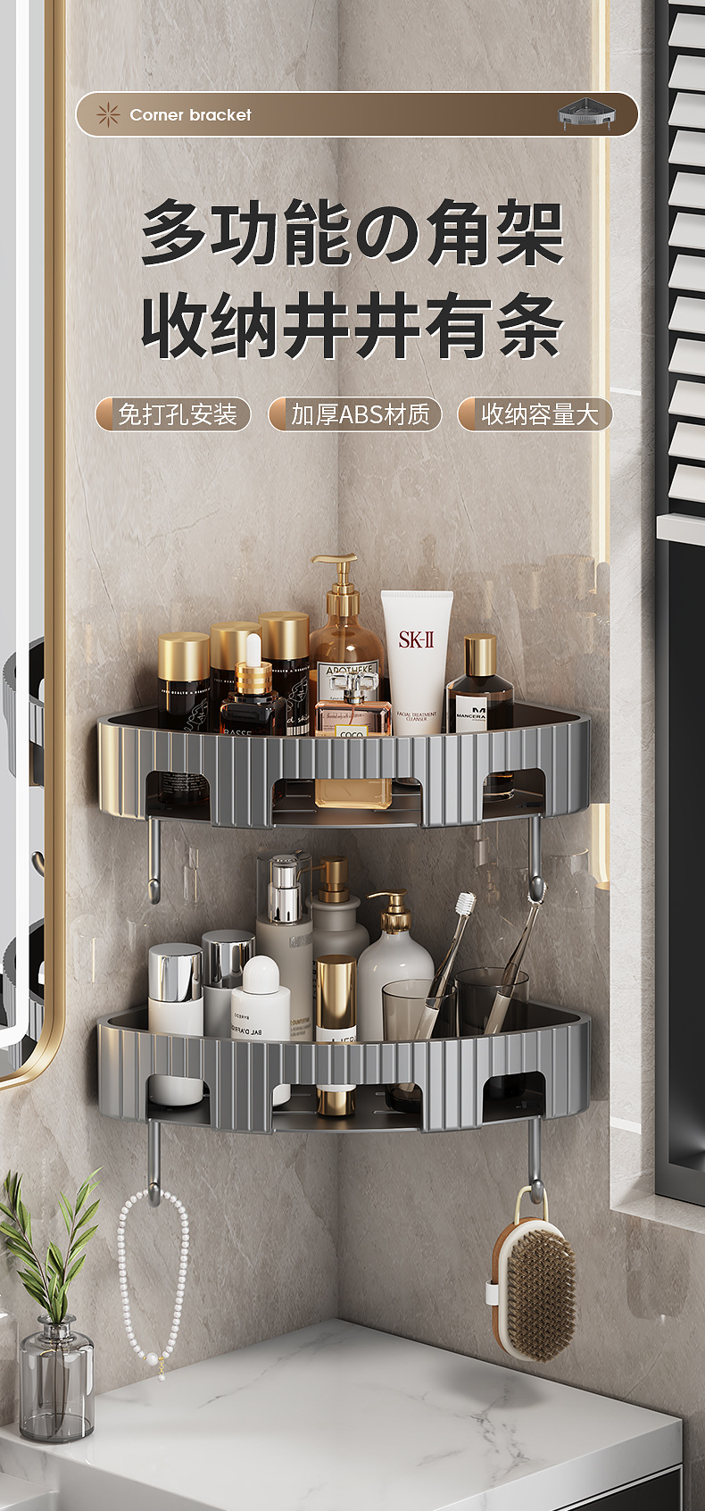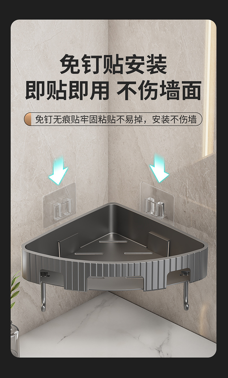 펀치없는 욕실 삼각대 화장실 삼각형 보관 선반 화장실 책상 벽 보관 랙 걸이스토어 가기
