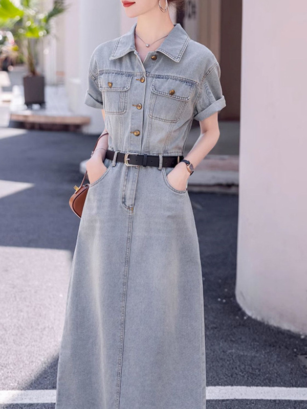 인터넷 연예인 폭발성 데님 원피스 기질 긴 원피스 여성의 여름 얇은 2024 새로운 하이 엔드 감각스토어 가기