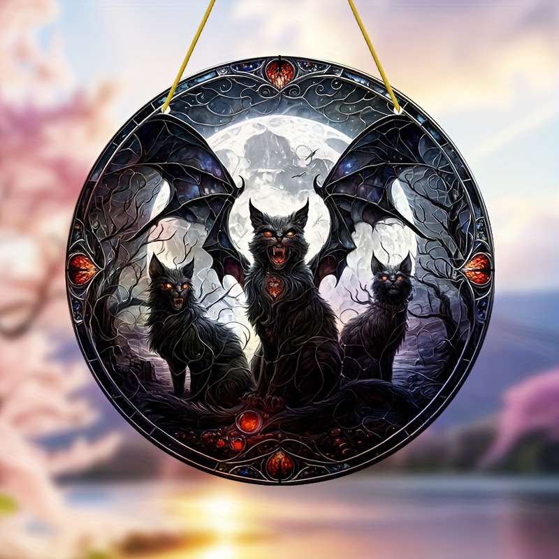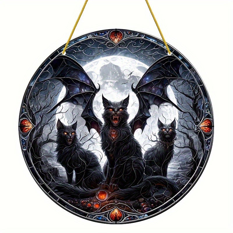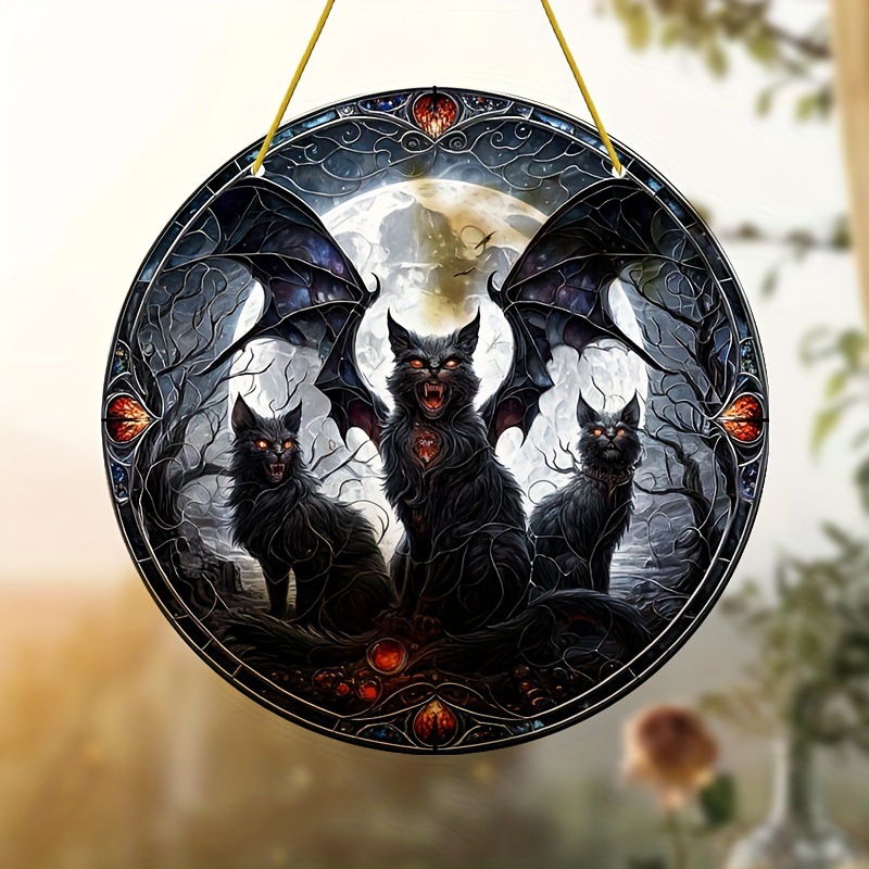할로윈 공포 박쥐 검은 고양이 조합 아크릴 창 장식 현관 펜던트 체인 교수형 정원 장식스토어 가기