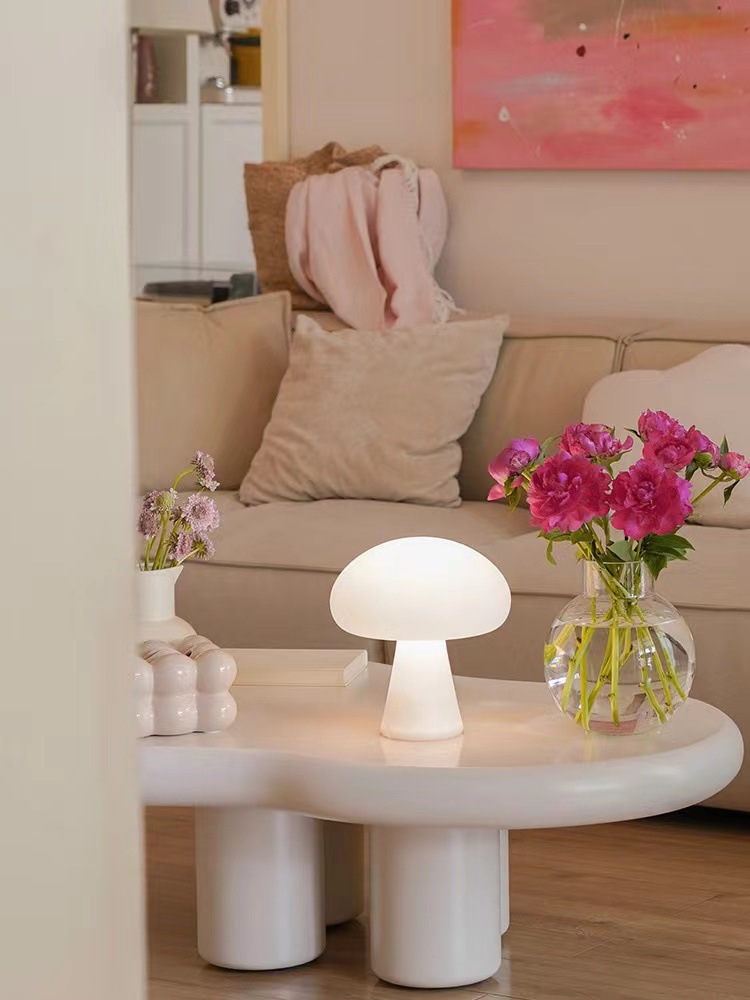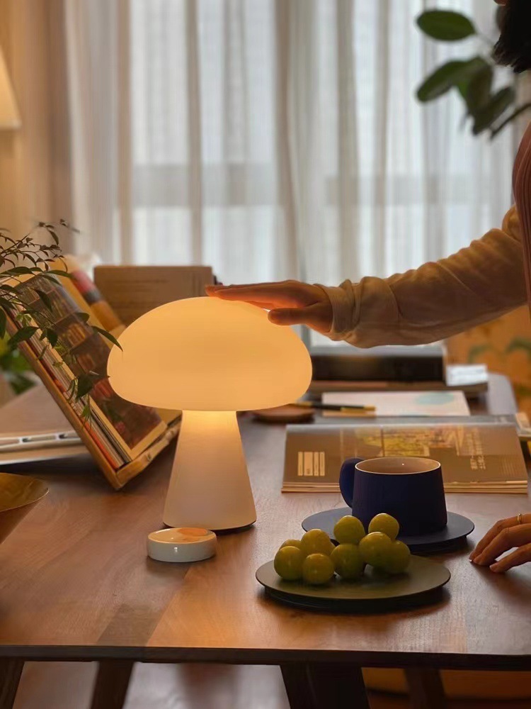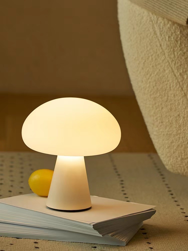 중간 고대 덴마크 Ins 크림 버섯 테이블 램프 충전 거실 연구 침실 침실 장식 야간 조명