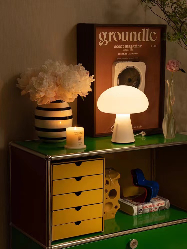 중간 고대 덴마크 Ins 크림 버섯 테이블 램프 충전 거실 연구 침실 침실 장식 야간 조명스토어 가기