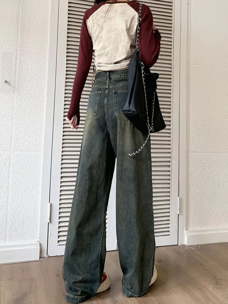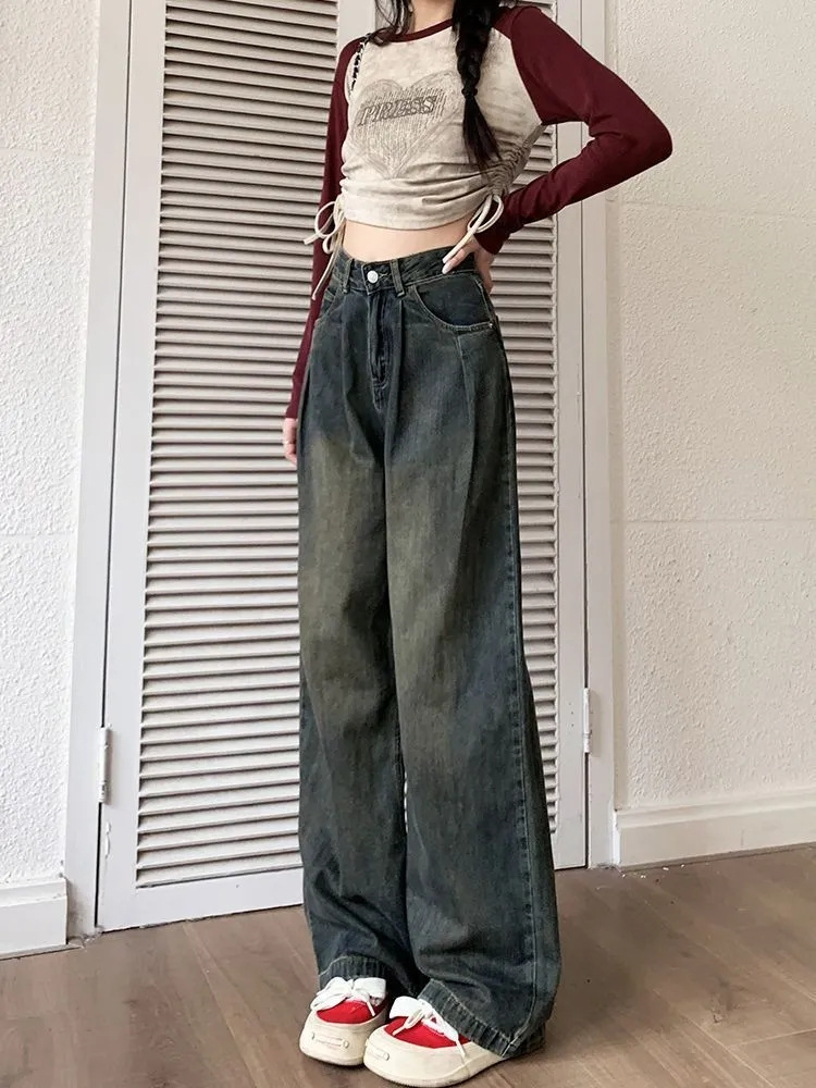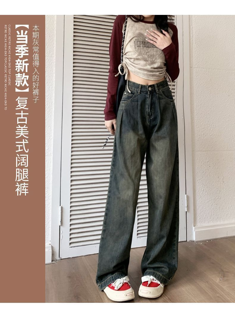 시멘트 회색 청바지 여성의 2024 봄과 가을에 플러스 사이즈 높은 허리 슬리밍 느슨한 수직 스트레이트 바닥 트렌디 바지스토어 가기