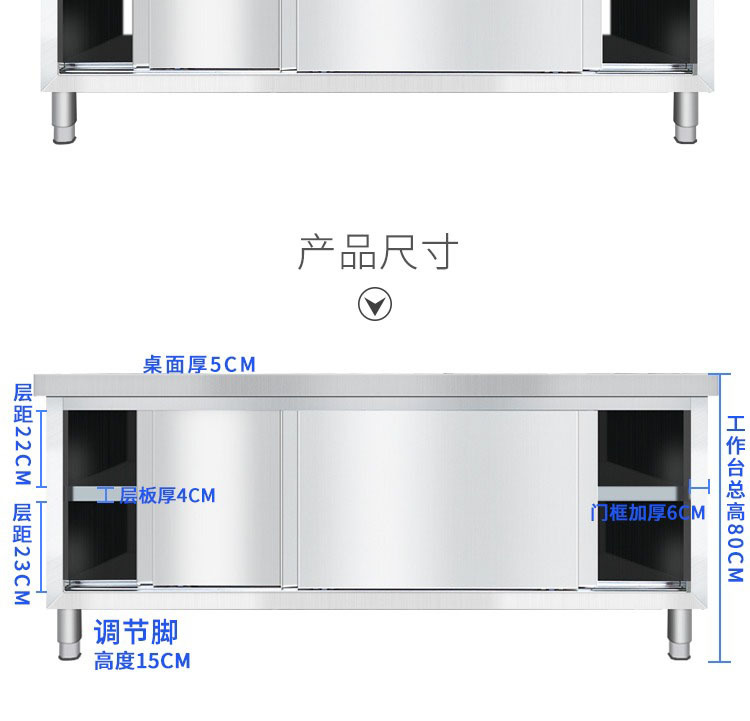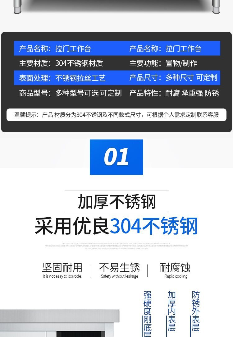 스테인레스 스틸 작업대 두꺼운 주방 호이스트 절단 콘솔 홈 상업용 보관 캐비닛