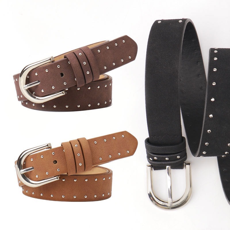 새로운 숙녀 리벳 벨트 핀 버클 벨트 펑크 캐주얼 트렌드 벨트 모든 경기 맞춤형 벨트 공장 도매스토어 가기