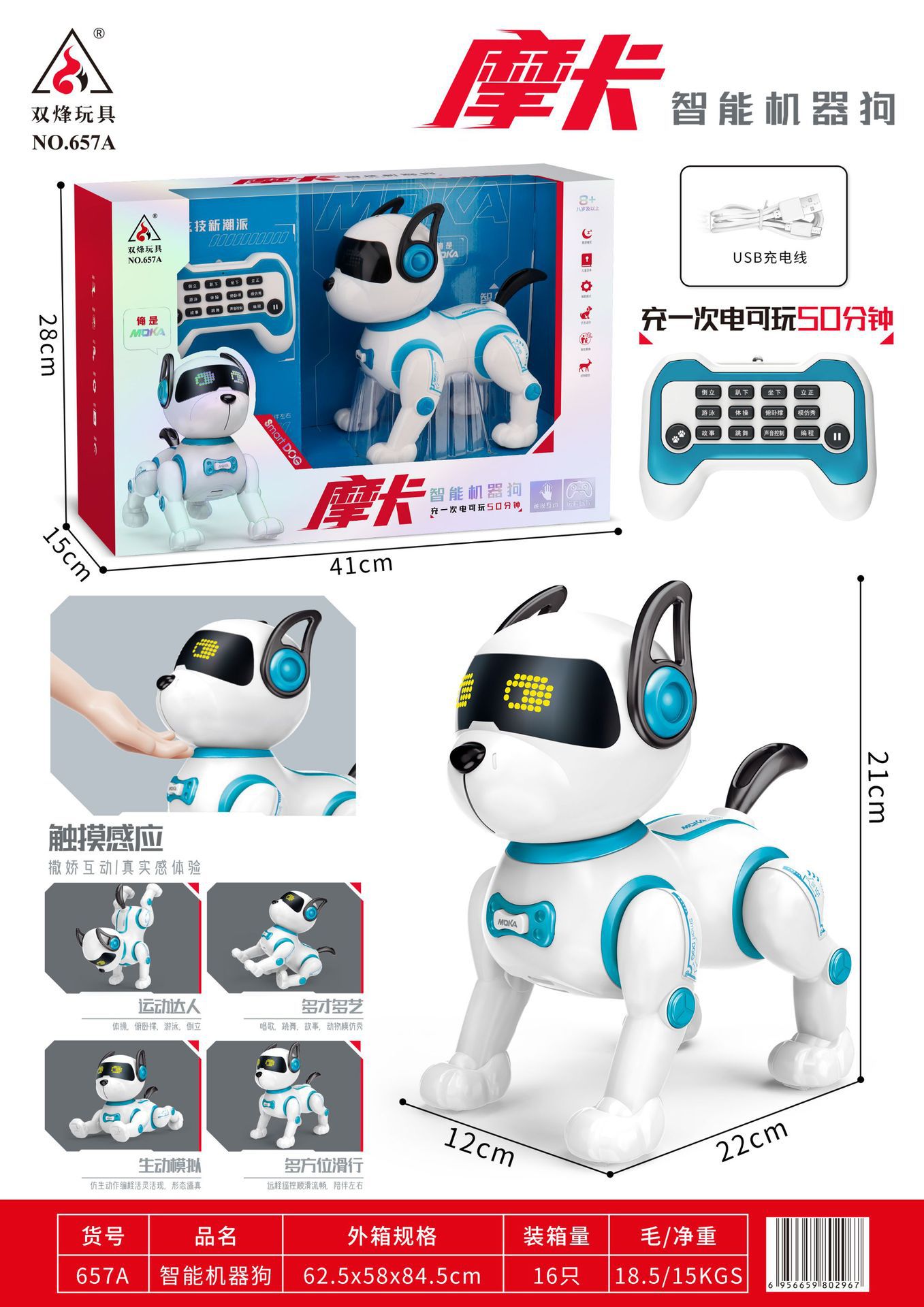 • 657A 모카 지능형 로봇 개 (충전은 50 분 동안 재생할 수 있습니다)